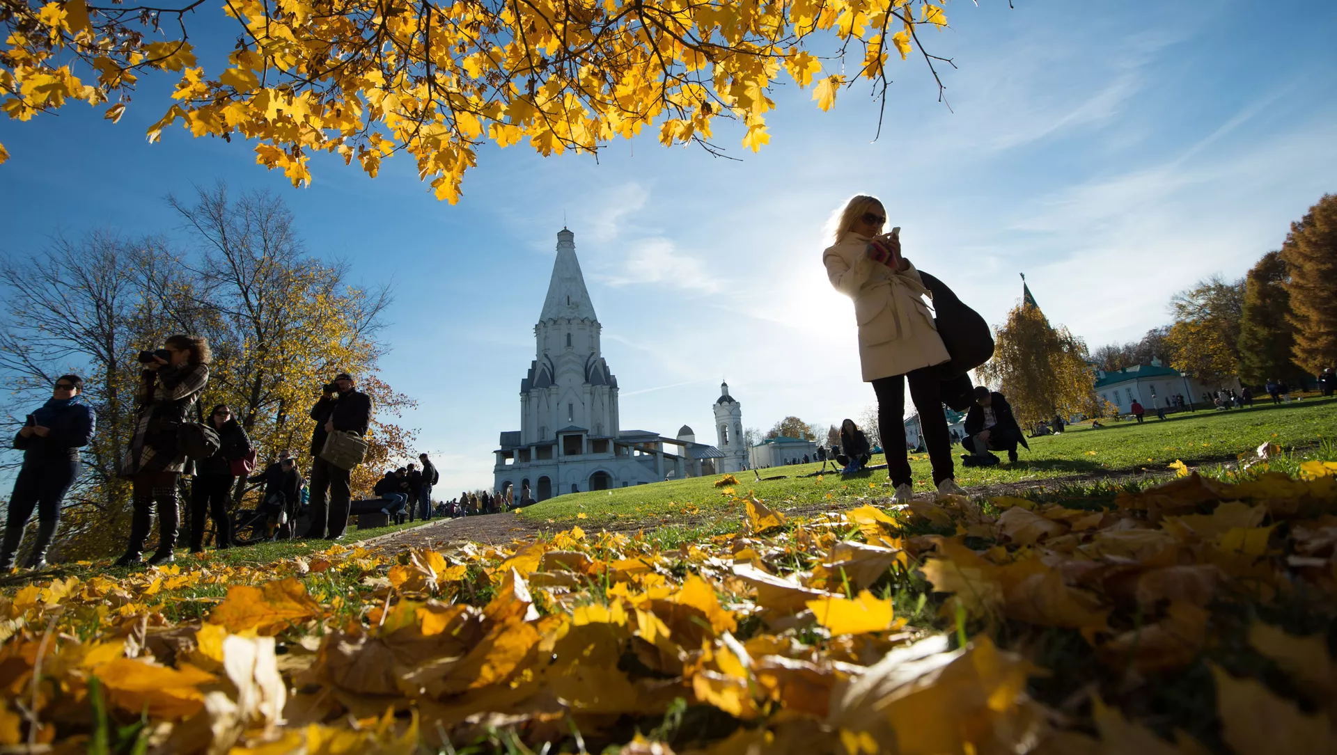 ساکنین محلی در پارک کالومنسکایا گردش می کنند