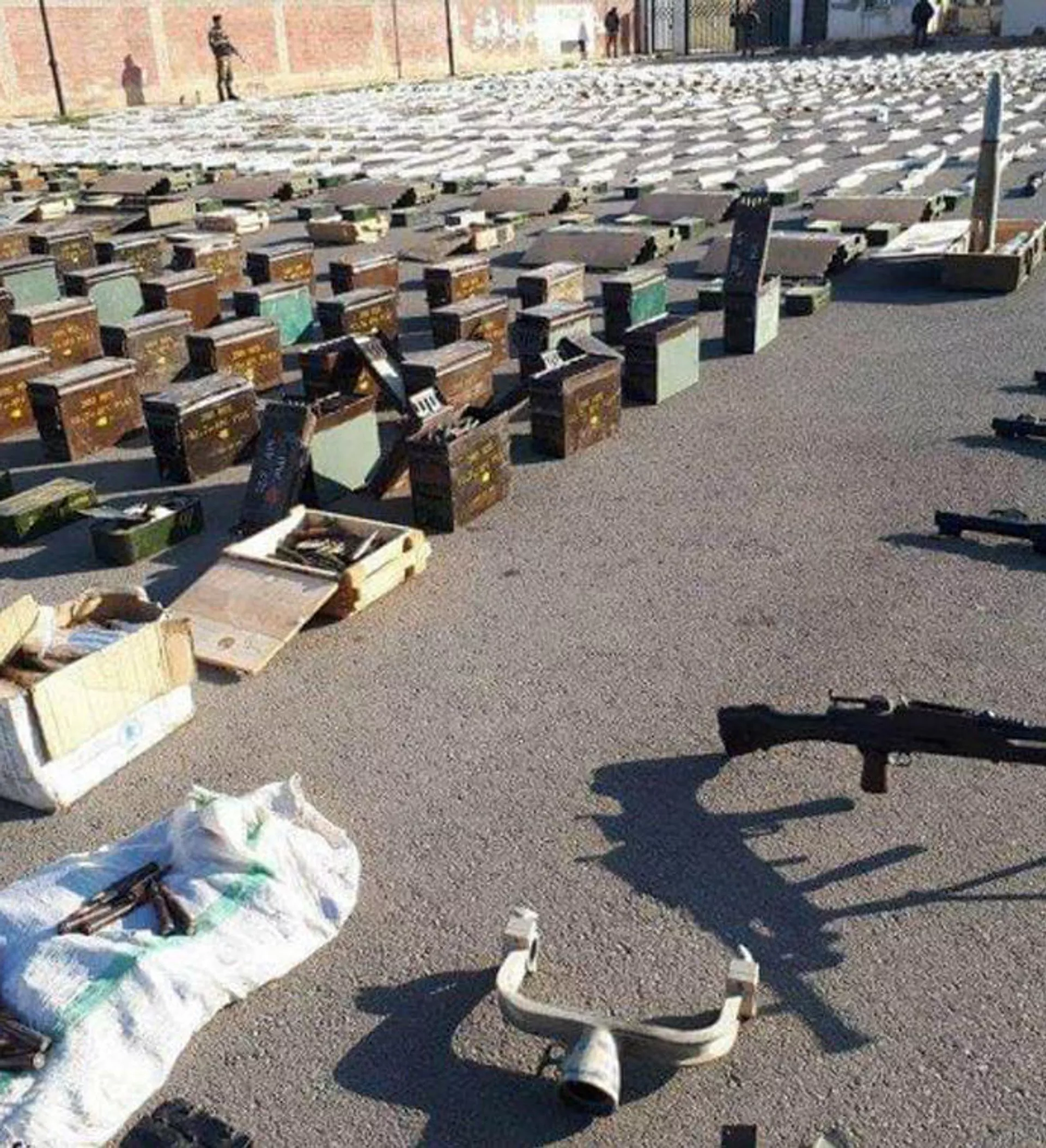 به نقل از ارتش سوریه، ماه گذشته در جنوب سوریه، انبار سلاح های مختلف تروریستی یافت شده است. این انبارها شامل اسلحه و تفنگ های تهاجمی، نارنجک، خمپاره، کوادکوپتر، تجهیزات ارتباطات ماهواره ای پیدا شده است.