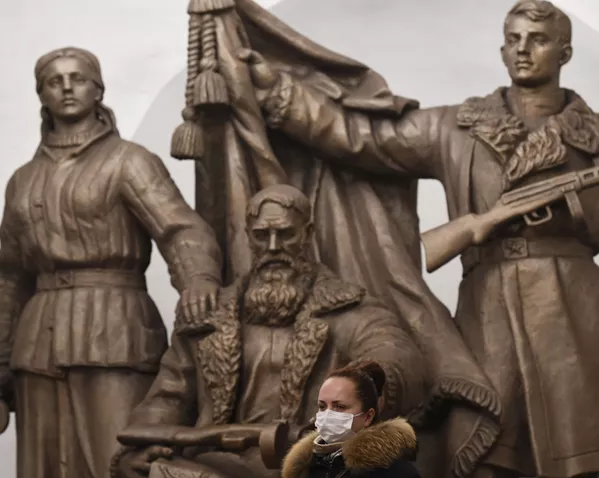 عابران پیاده با ماسک در میدان سرخ مسکو