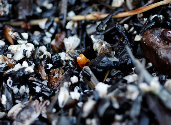 جویندگان کهربا در کالینینگراد در دریای بالتیک برای صید کهربا خود را به امواج می سپارند. کهربا در میان دیگر اشیاء در ساحل.