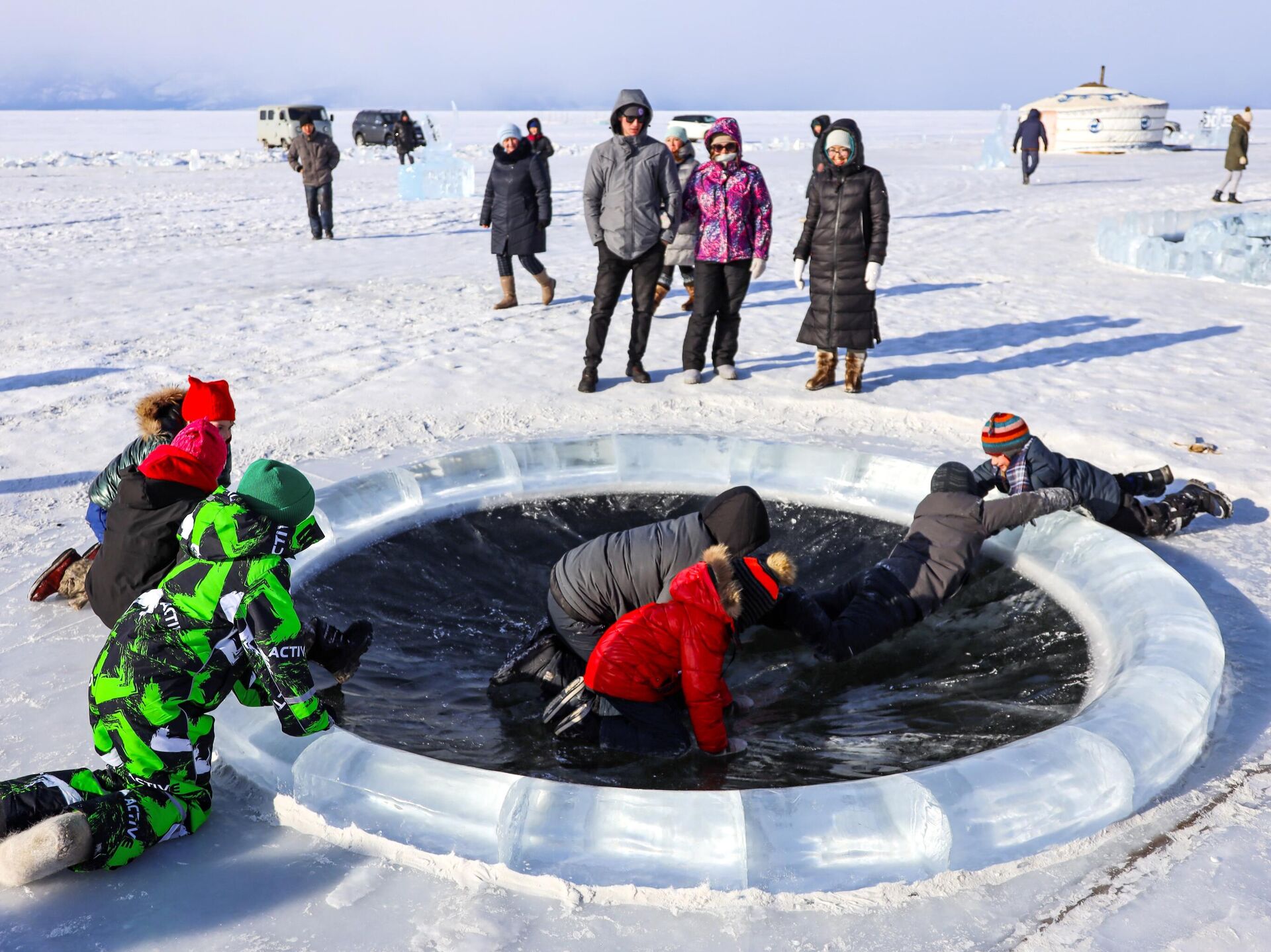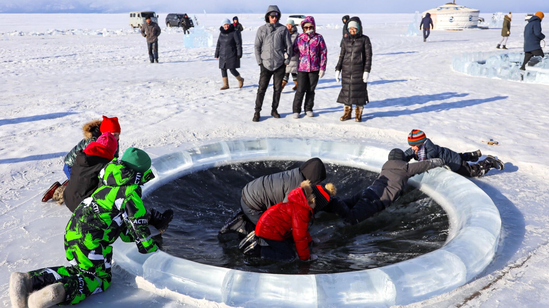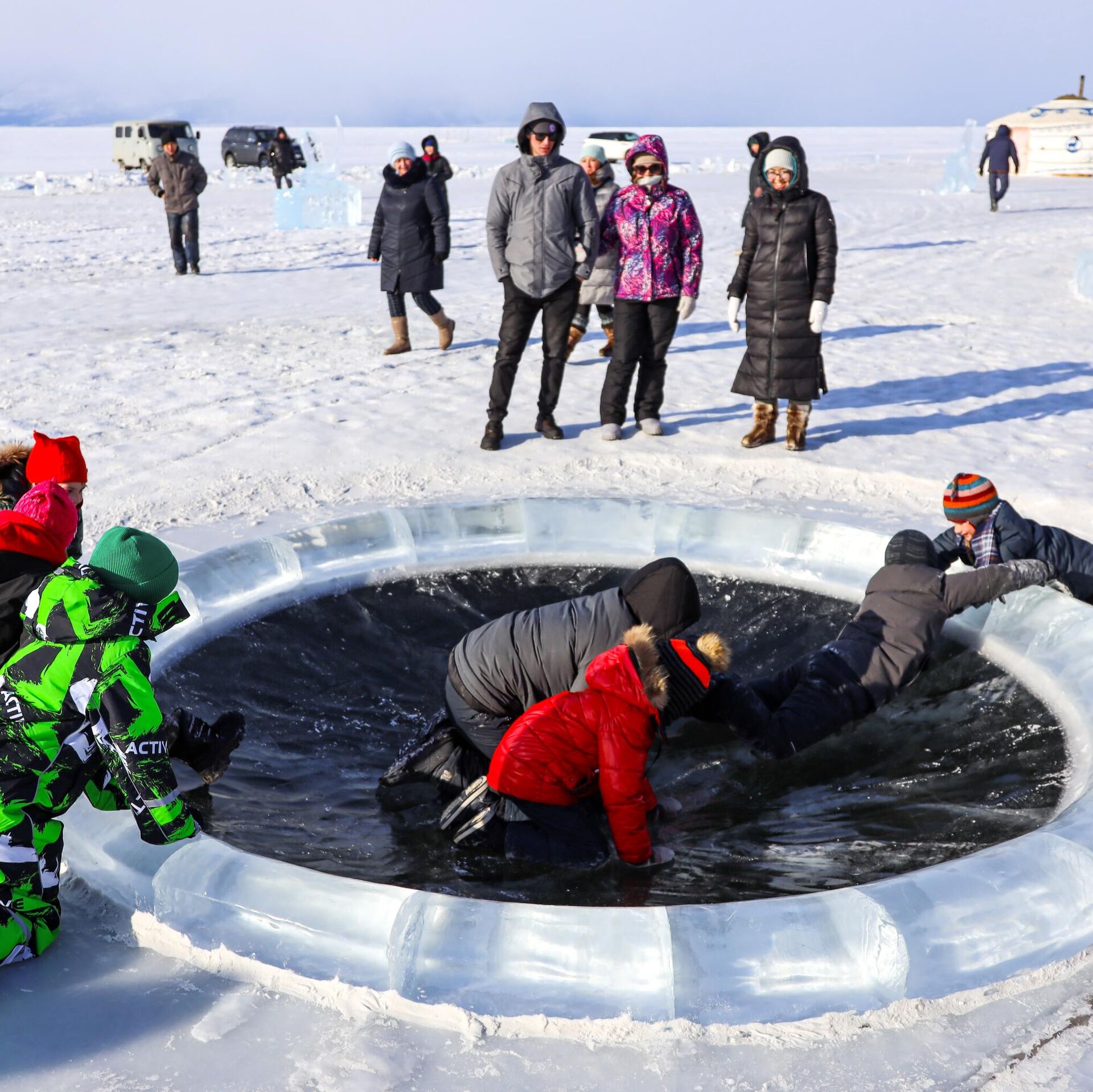 جشنواره یخ در جزیره آلخون در سیبری. حوضچه یخی.