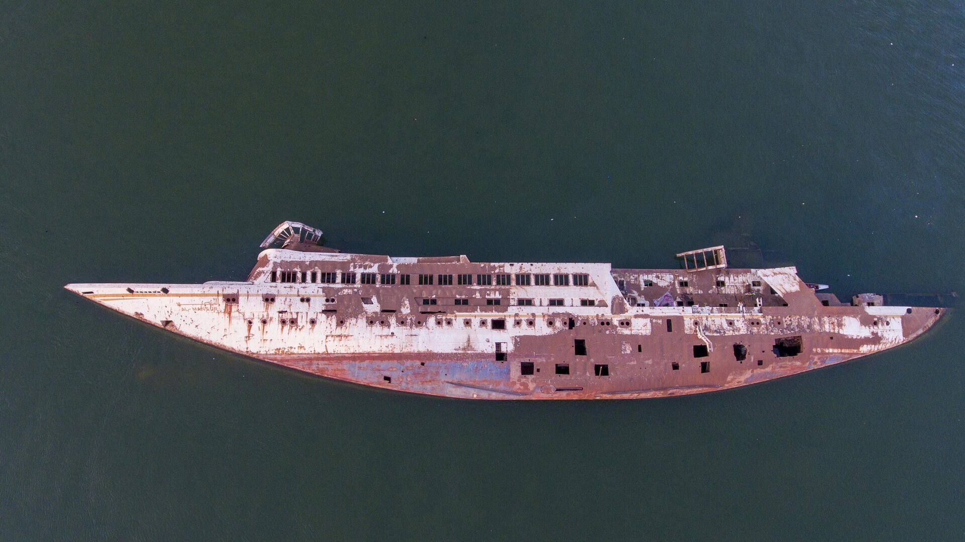 © AFP 2023 / Hussein Faleh قایق «نسیم اقیانوس» 82 متری یا «نسیم بصره»، قایق تفریحی خصوصی صدام حسین، رئیس جمهور سرنگون شده عراق، لنگر انداخته در آبراه شط العرب.