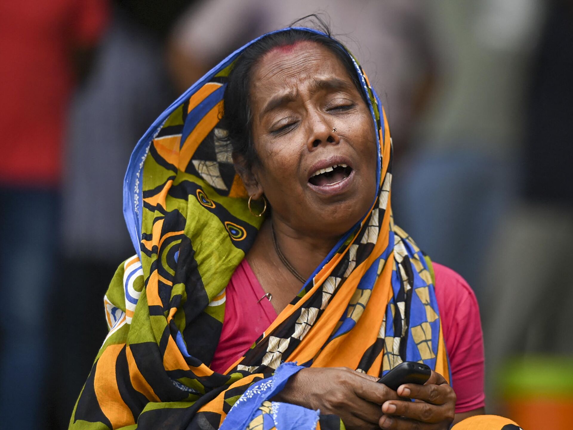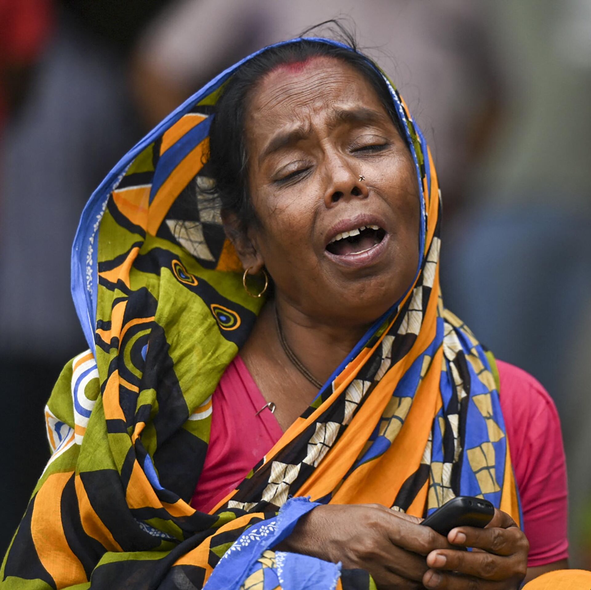 یک پلیس به مردی کمک میکند تا جسد یکی از اعضای خانوادهاش را در یک پارک تجاری که بهعنوان سردخانه موقت مردگان بازیابی شده از لاشه واگن تصادف سه قطار در نزدیکی بالاسوره، در ایالت اودیشا در شرق هند، استفاده میشود، شناسایی کند.