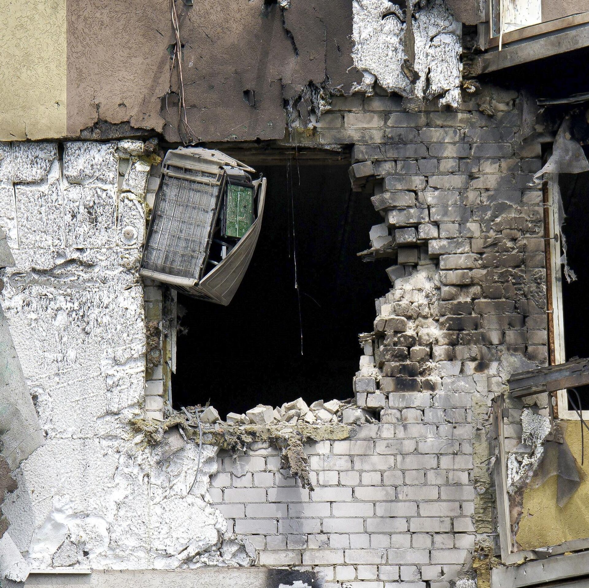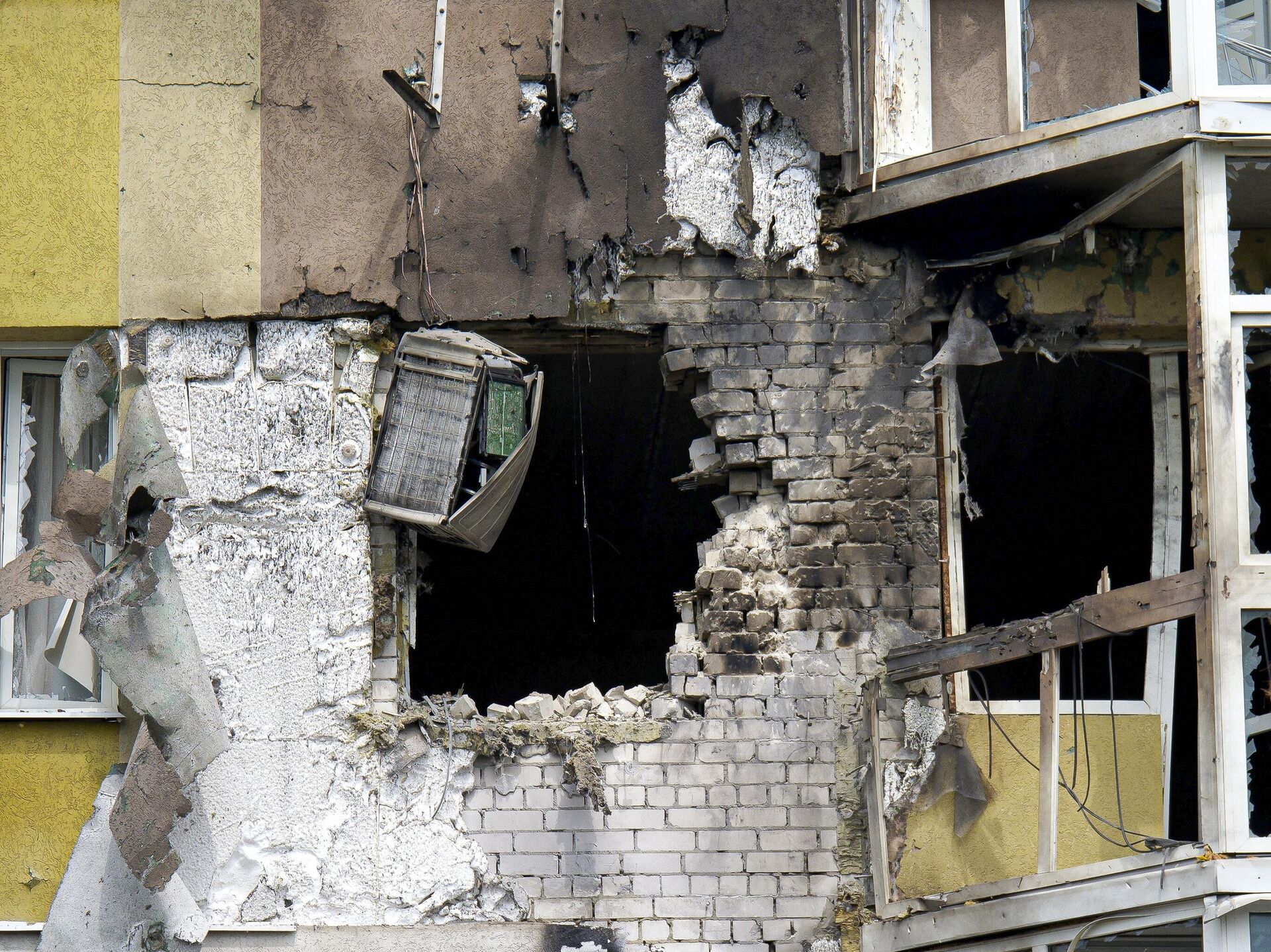ساختمان مسکونی در مرکز شهر وارونژ که در اثر حمله پهپاد آسیب دیده است.