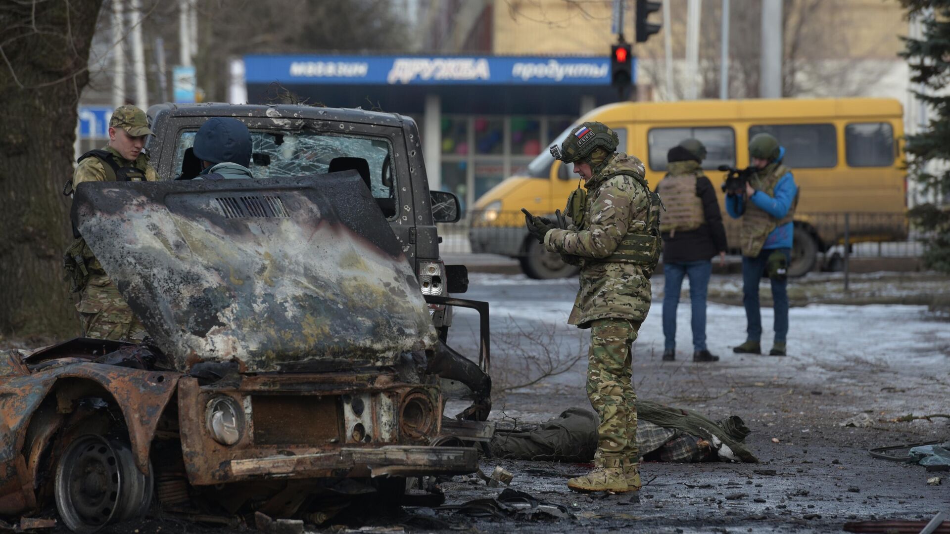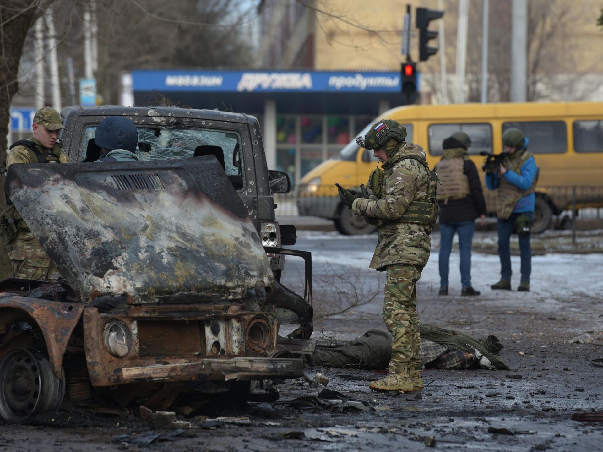 پیامد گلوله باران جمهوری مردمی دونتسک از سوی نیروهای اوکراین.