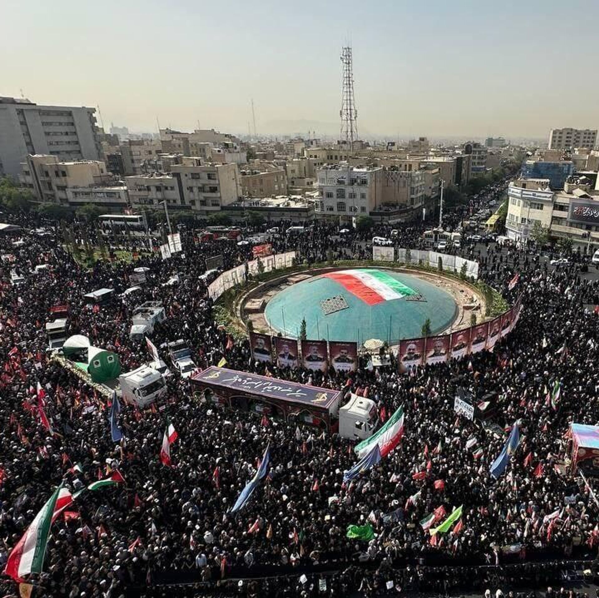 تصاویر هوایی از میدان انقلاب،حضور پرشور مردم تهران را در مراسم تشییع قربانیان حملات اسراییل نشان می دهد.