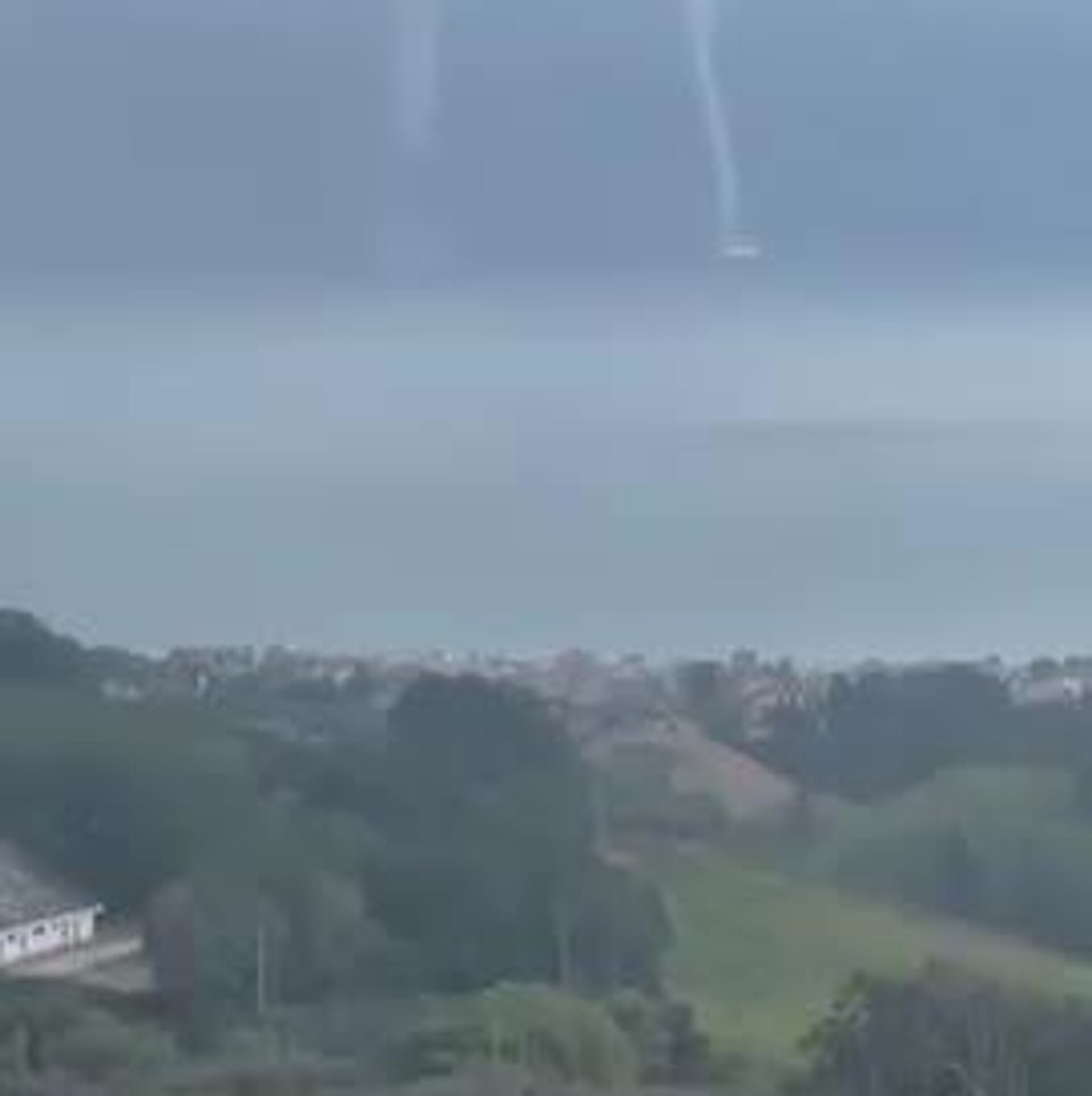 دو گردباد دریایی در ساحل بین استراحتگاههای مارتینسیکورو و تورتورتو در ایتالیا