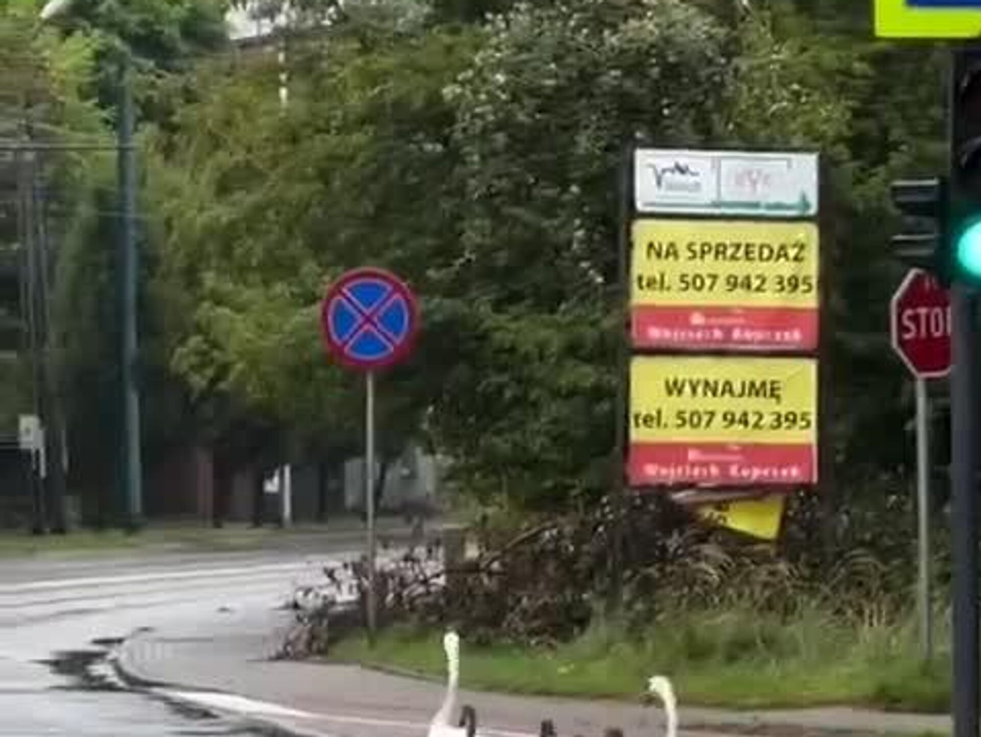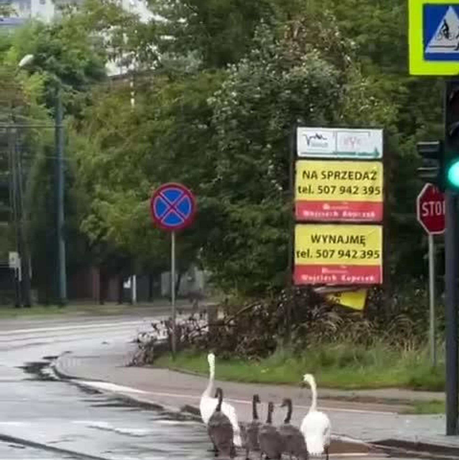 دو قوی پدر و مادر به همراه چهار فرزند خود از جاده پرپیچ خم و پر از ماشین در جنوب لهستان سالم و سلامت عبور کرده و به سمت برکه رفتند.