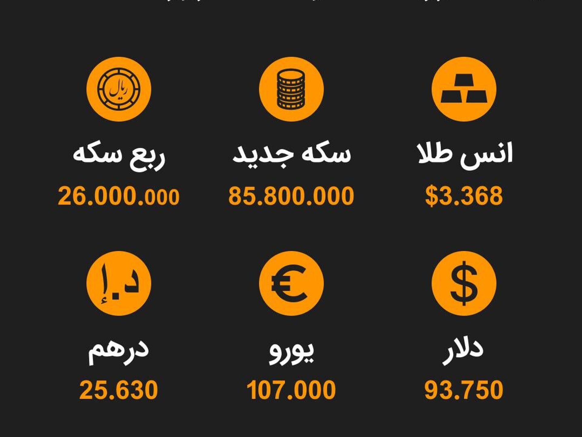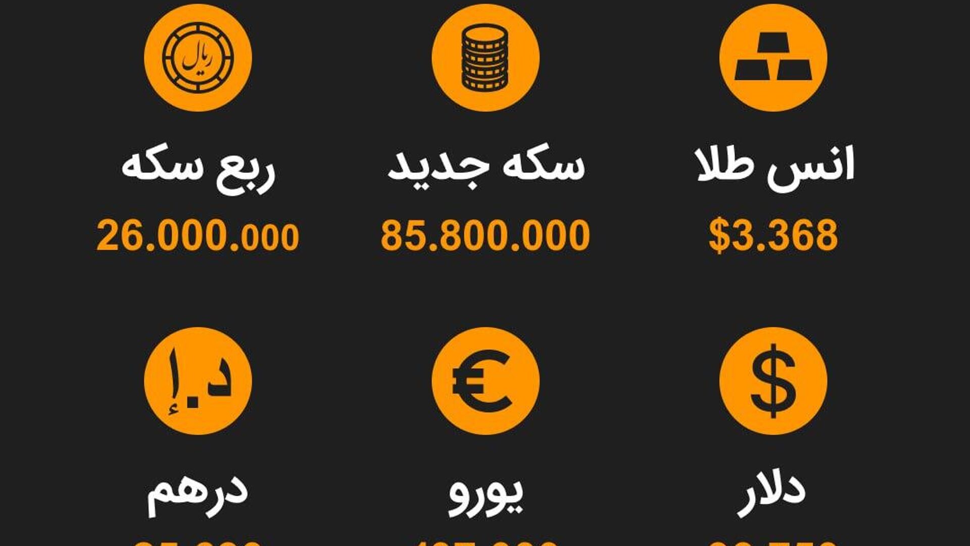 10:59 05.08.2025 (بروز رسانی شده: 11:00 05.08.2025) نرخ ارز، سکه و طلا تا ساعت 11:00