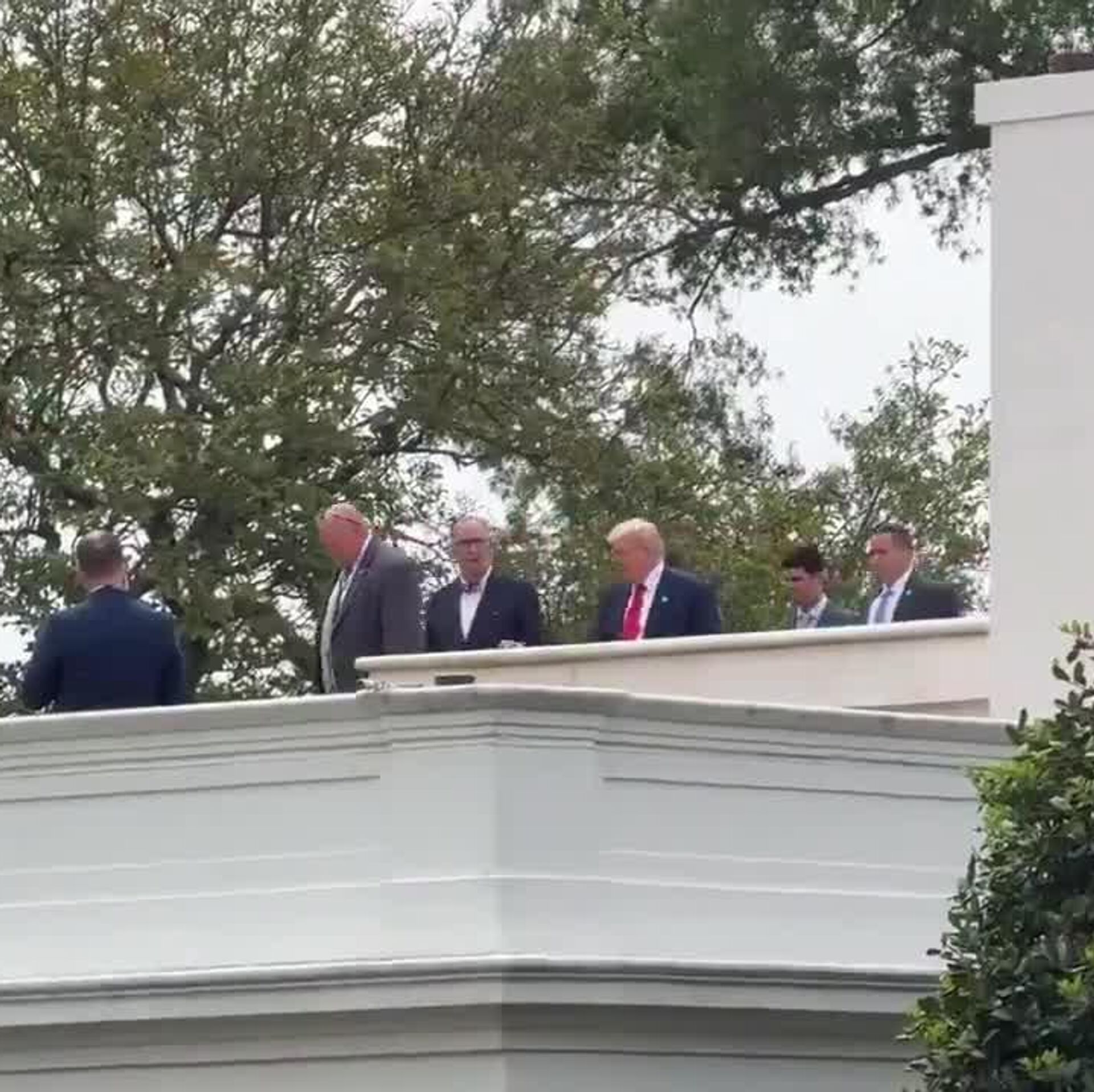▫رهبر آمریکا امروز سهشنبه به همراه معمار جیمز مککری، که در حال کار بر روی پروژهای به ابتکار ترامپ برای ساخت یک سالن رقص جدید در اقامتگاه رئیس جمهور ایالات متحده است، روی پشت بام کاخ سفید قدم زد.