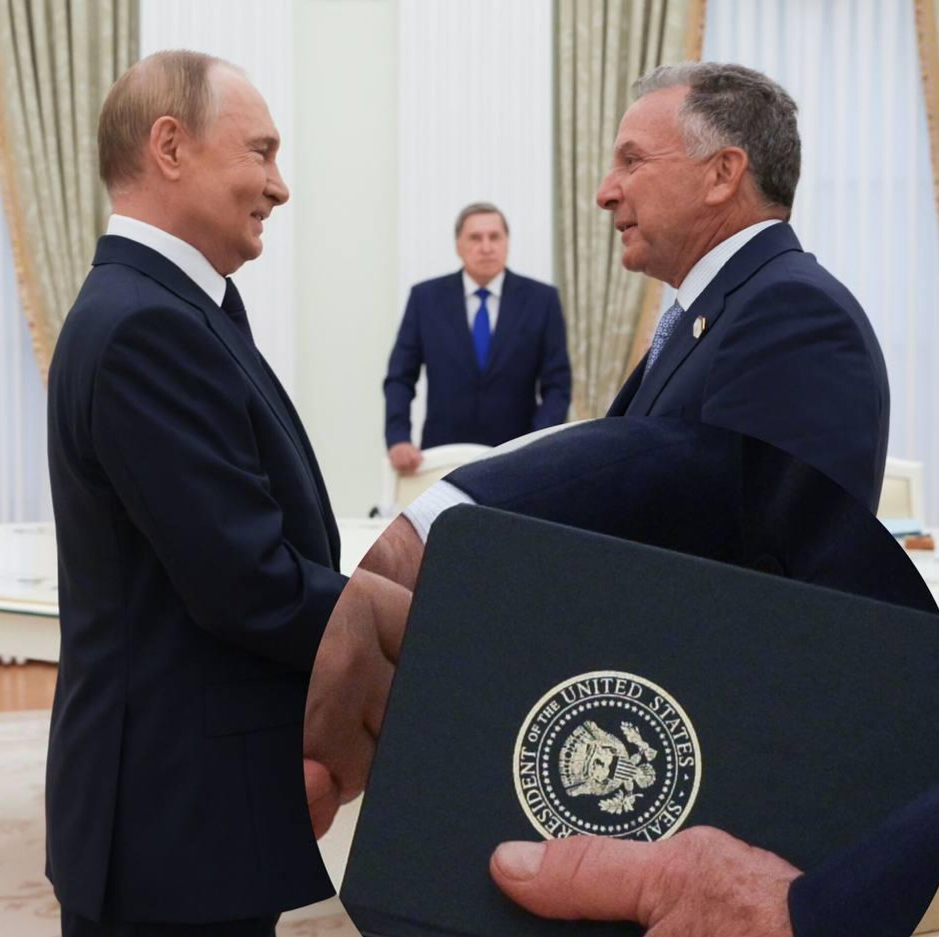 © telegram ir_sputnik /  مراجعه به بانک تصاویر ویتکاف، فرستاده ویژه رئیس جمهور آمریکا همه چیز را می نویسد
