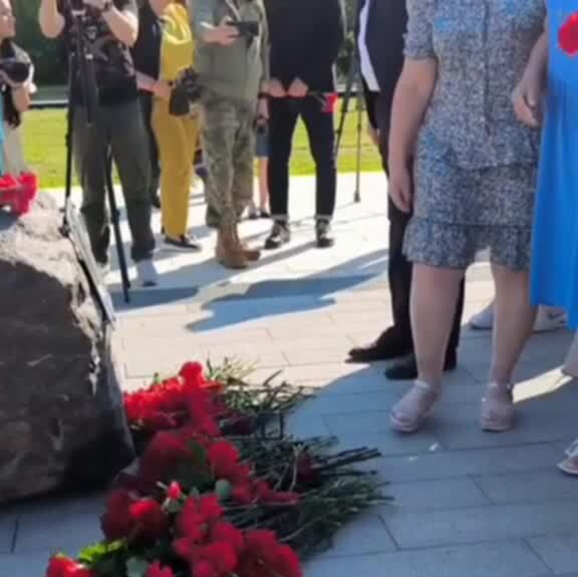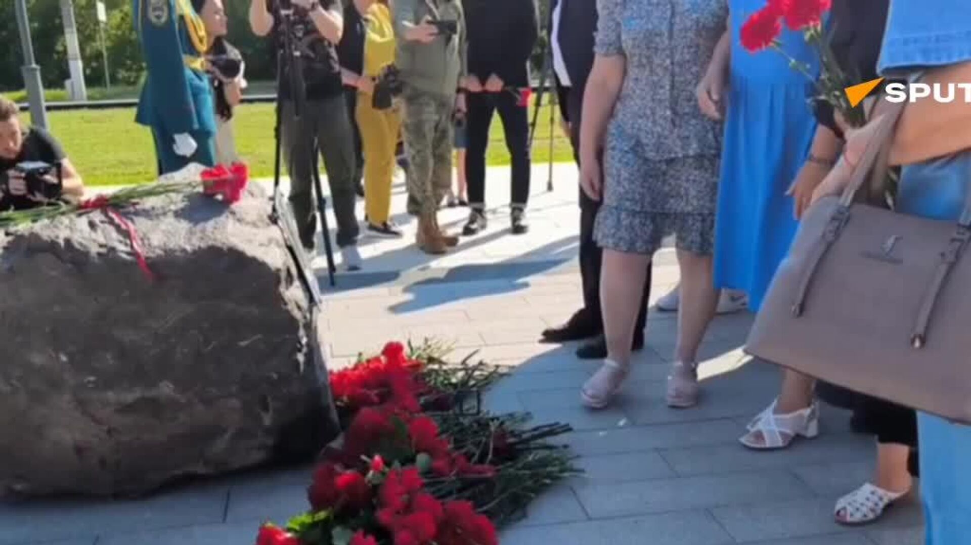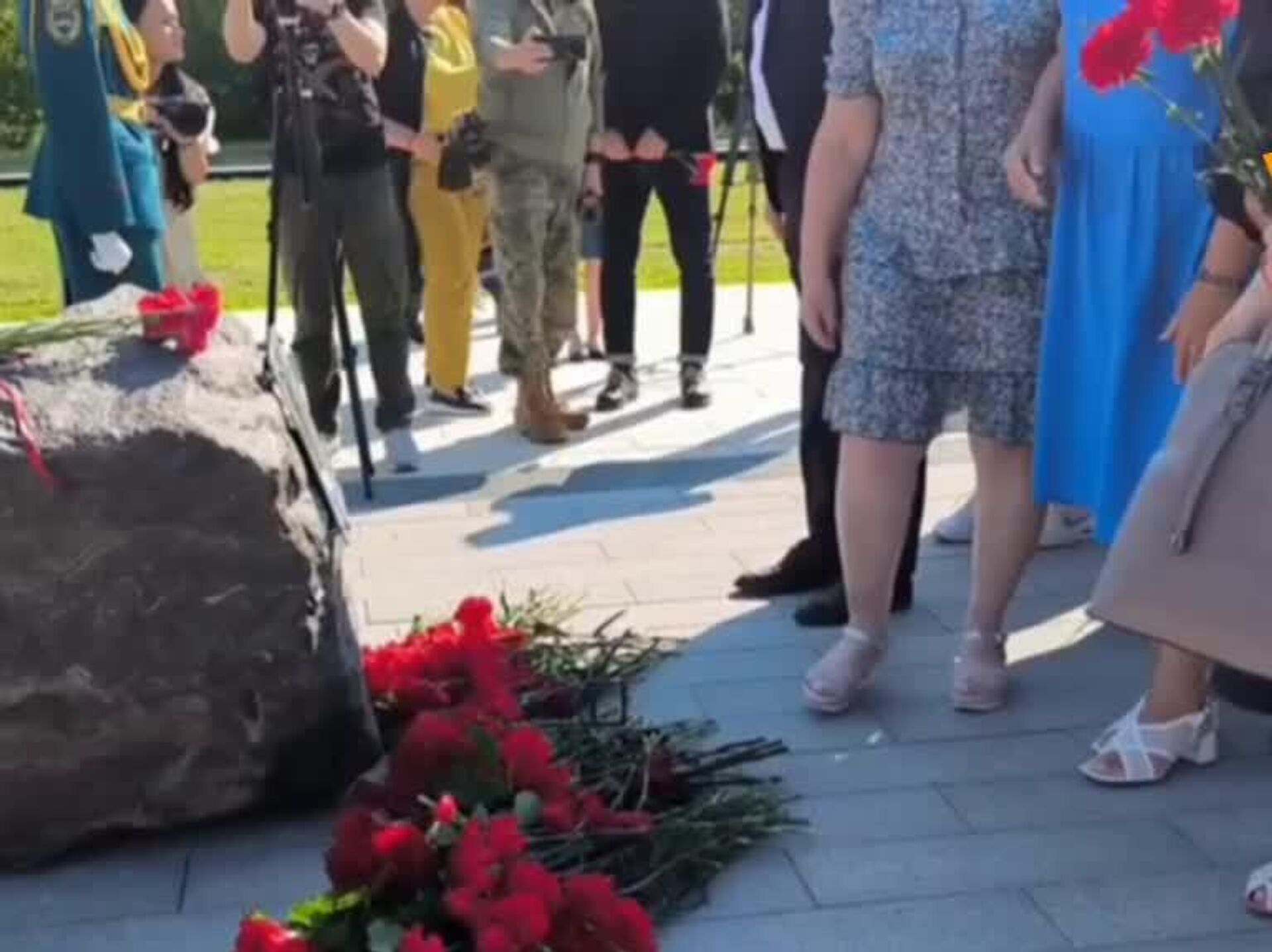 همچنین سنگی را در آن محل قرار دادند که قرار است بعدا درآنجا بنای یادبود قهرمانانی که غیرنظامیان را در منطقه مرزی کورسک نجات دادند ساخته شود.