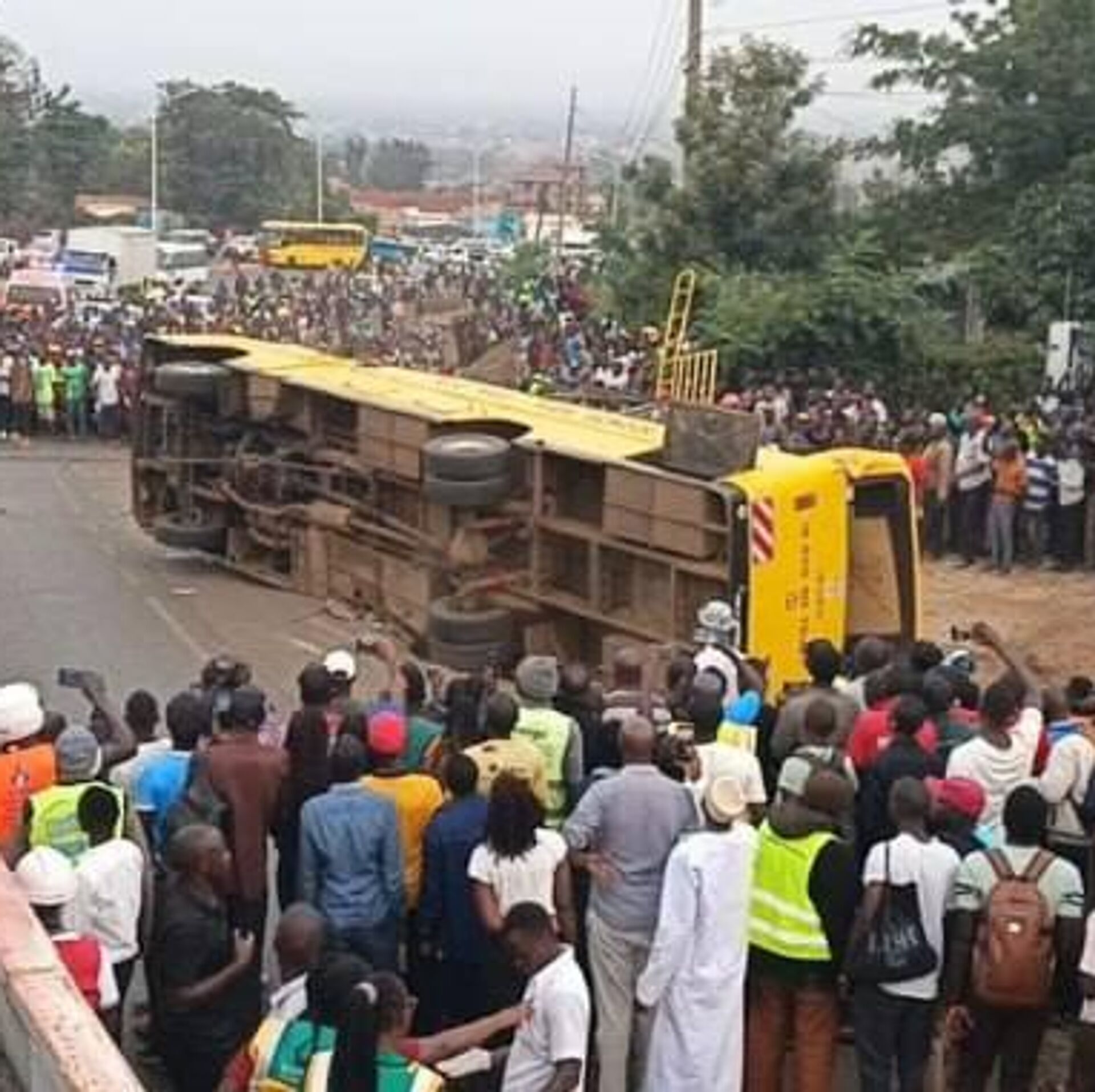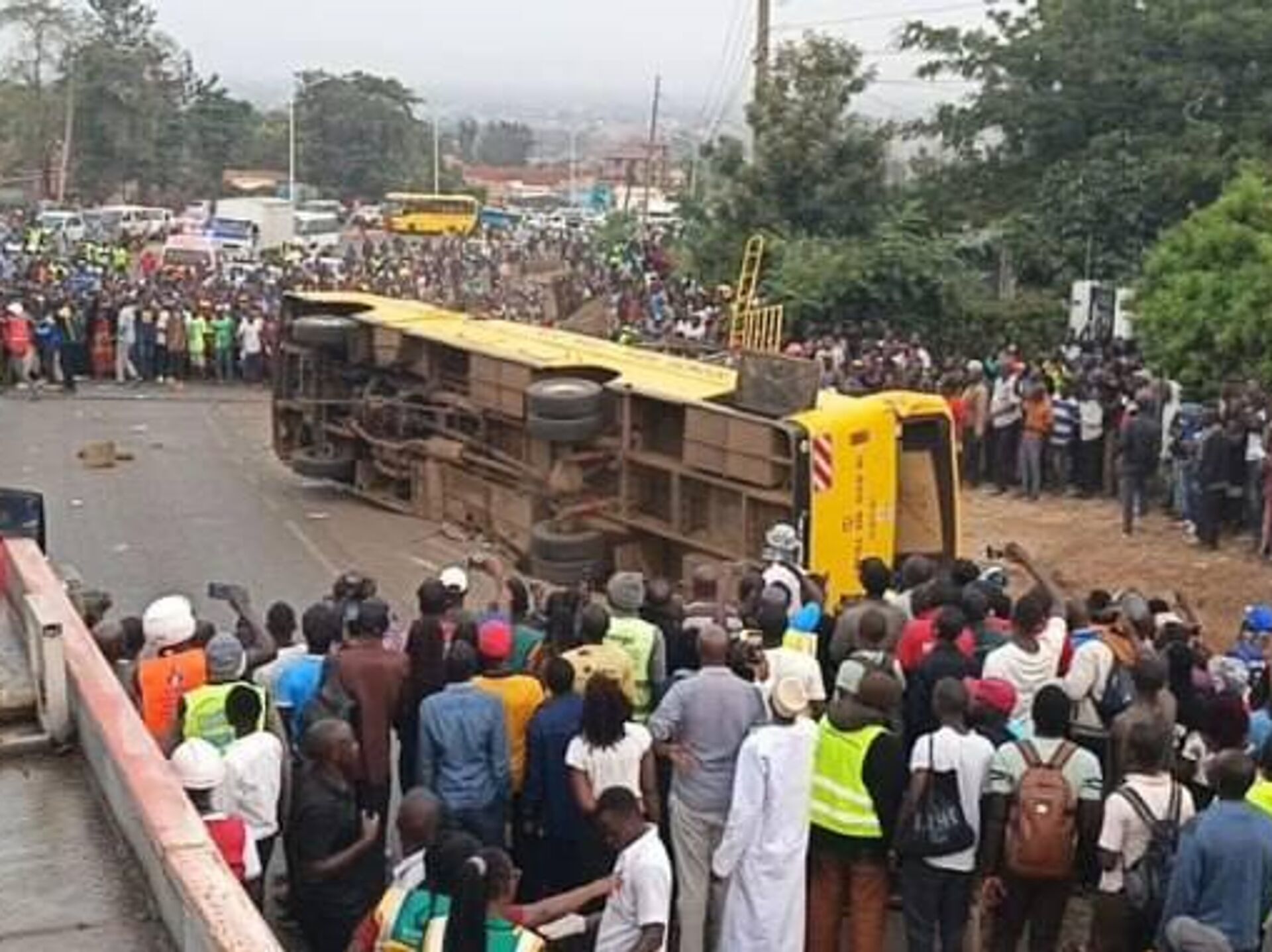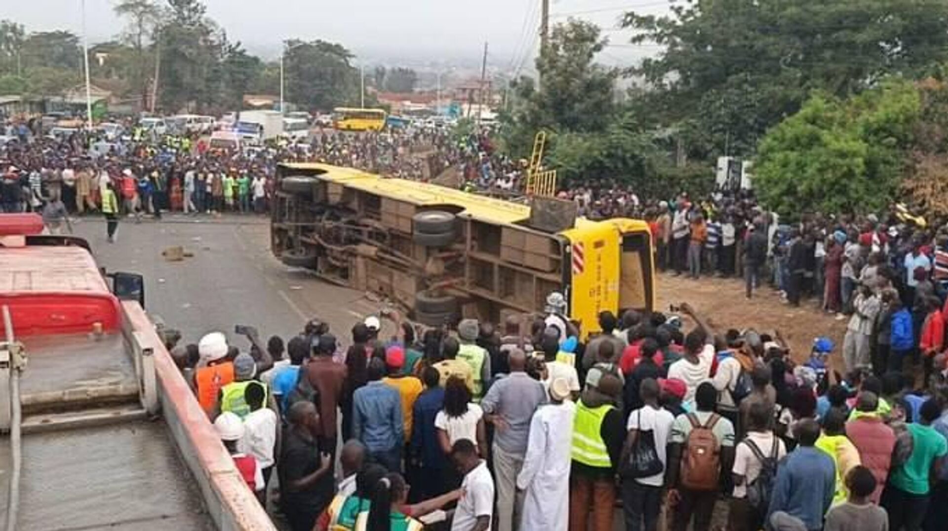 این اتوبوس حامل افرادی بود که از مراسم تشییع جنازه بازمیگشتند، در مسیر شهر کیسومو به کاکامگا واژگون شد.