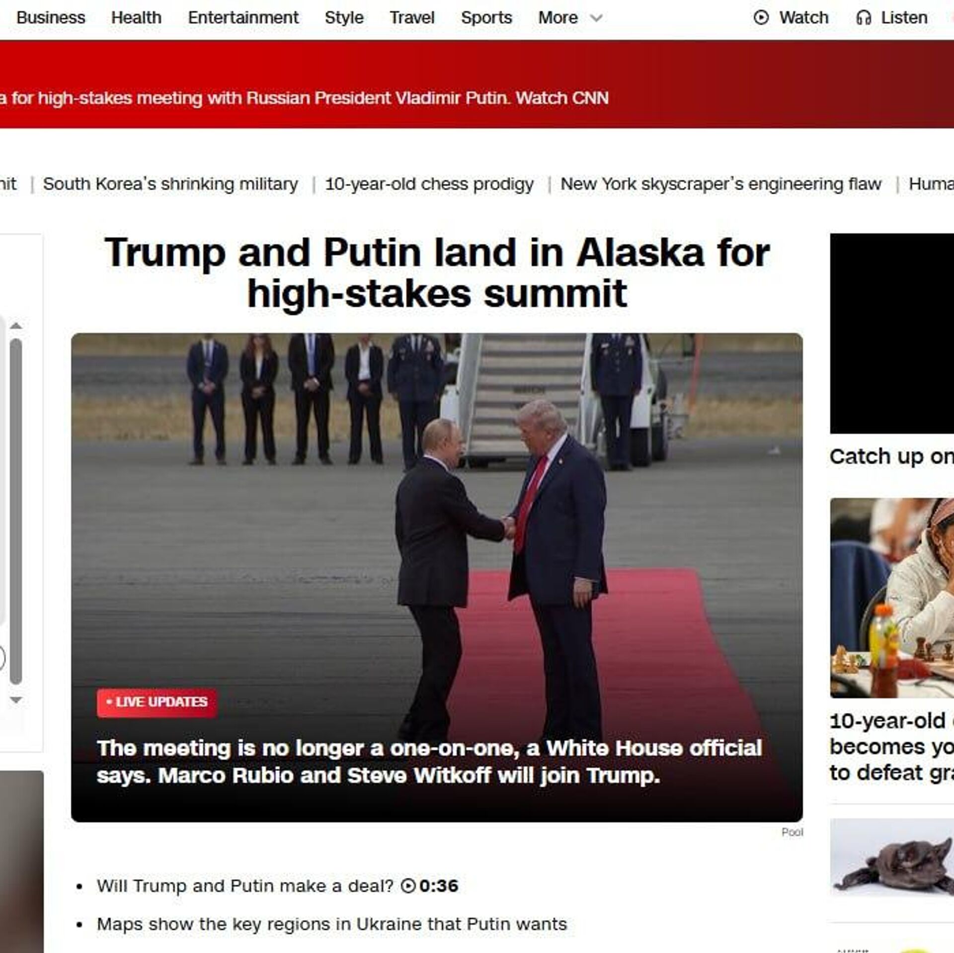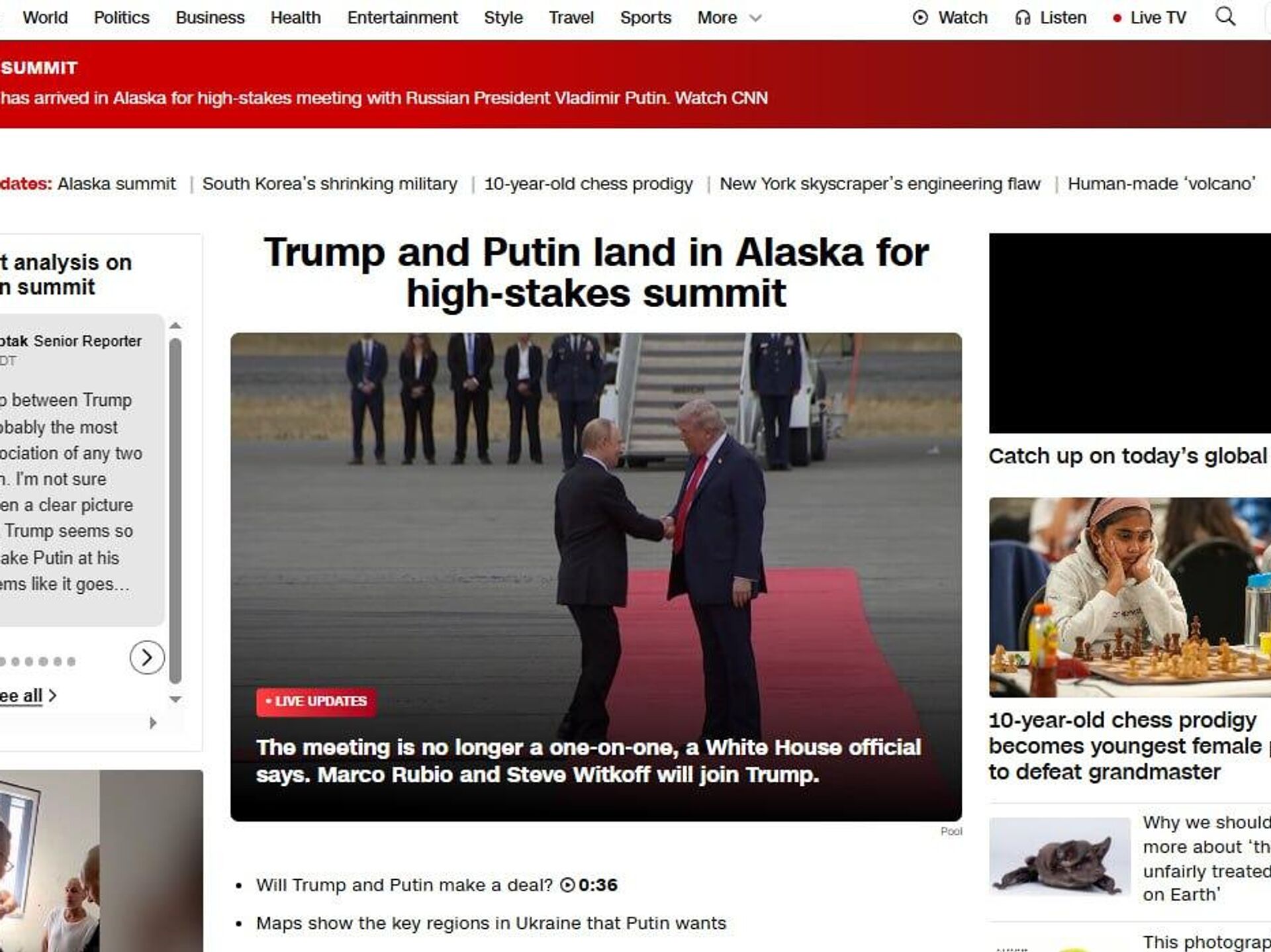 نشریات معتبر جهان در حال انتشار تصاویری از دست دادن روسای جمهور روسیه و آمریکا و همچنین ورود هواپیماهایشان به آلاسکا در صفحات اول خود هستند.