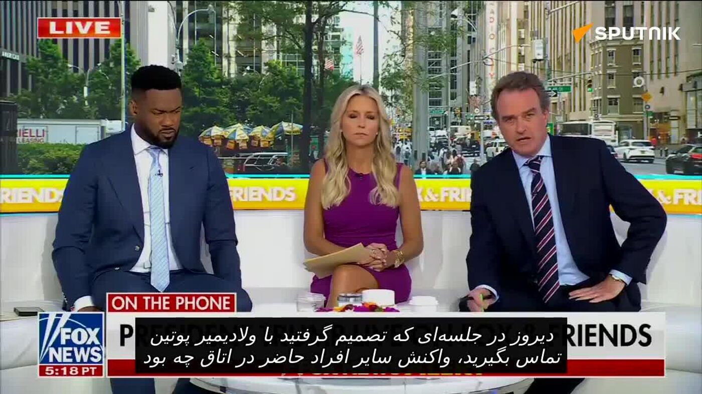 17:26 19.08.2025 (بروز رسانی شده: 17:30 19.08.2025) ترامپ گفت که دیروز رهبران اروپایی و زلنسکی را ترک کرده تا با پوتین صحبت کند: