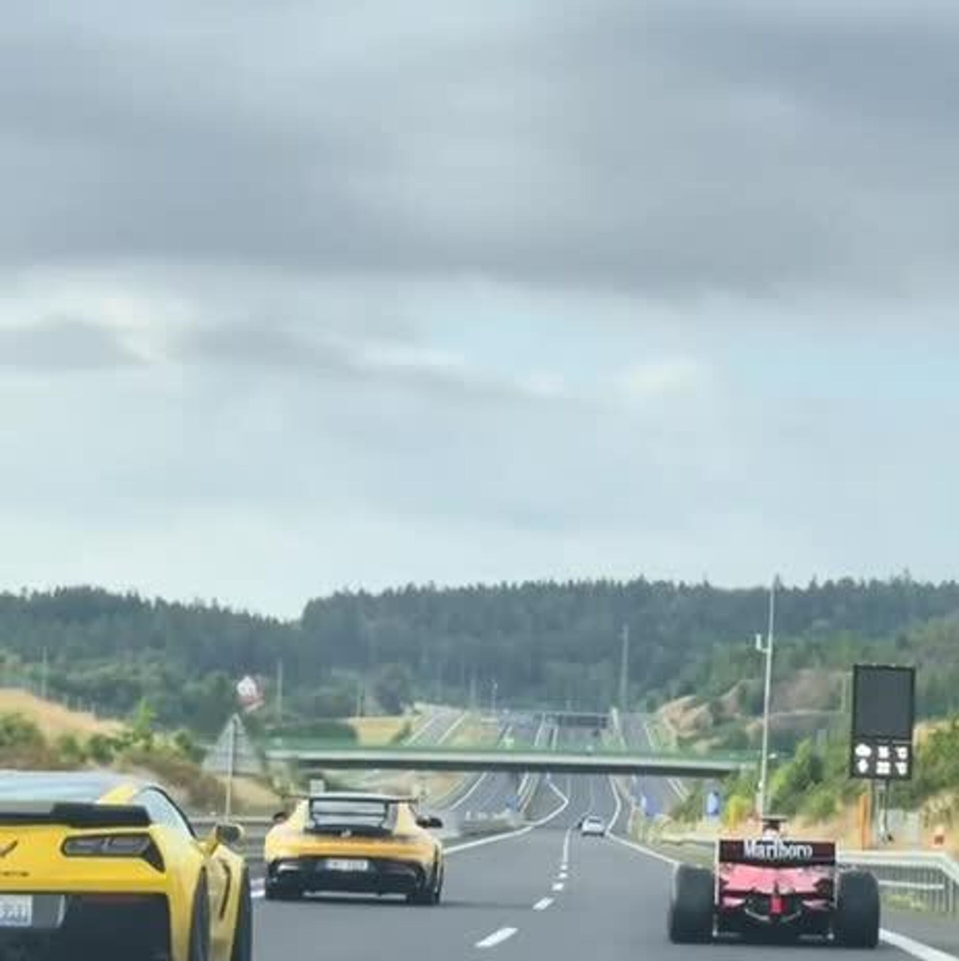 خودروی مسابقه فرمول یک در حال رانندگی در بزرگراه D4 در جمهوری چک