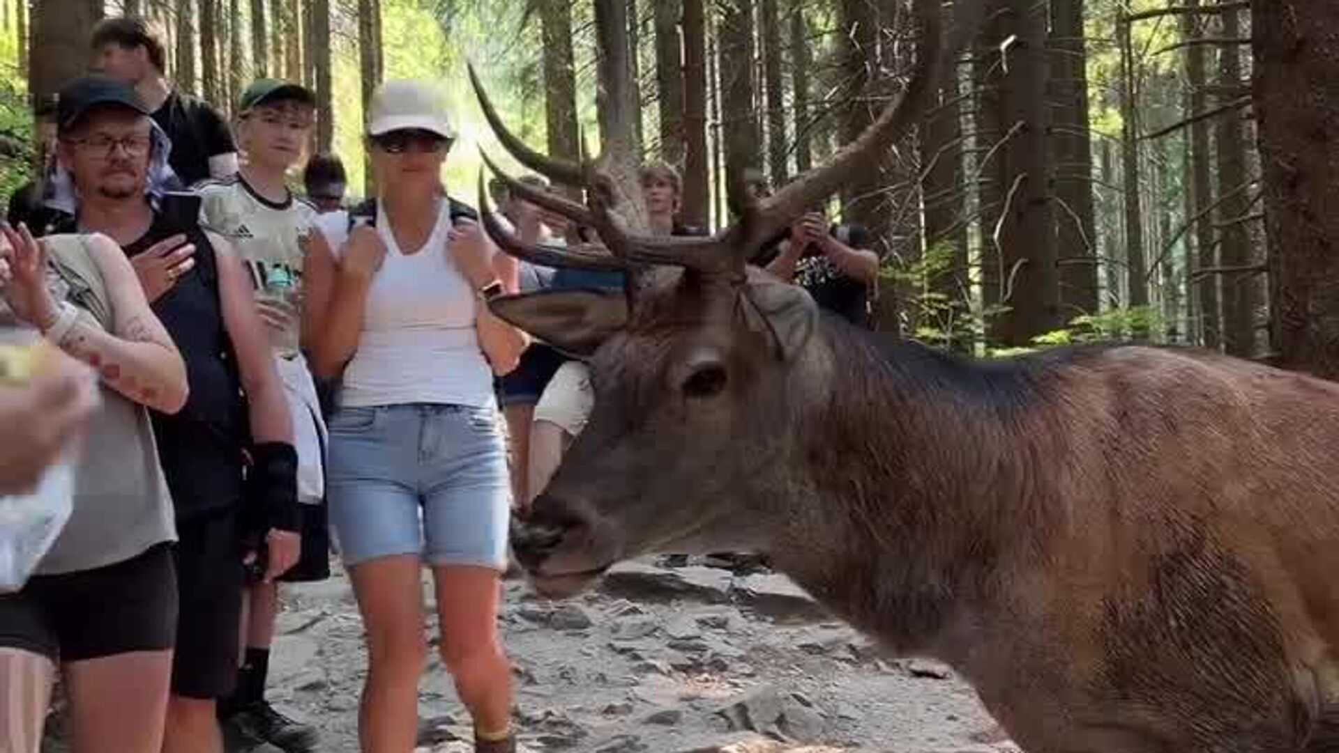 ▫ویدئویی که در پارک ملی تاترا در لهستان فیلم برداری شده و در آن یک گوزن برای استقبال از گردشگران از جای خود بیرون آمده، در فضای مجازی محبوبیت زیادی پیدا کرده است. البته، از این حیوان از فاصله نزدیک فیلمبرداری شده است. علاوه بر این، یکی از مردم تصمیم میگیرد به گوزنها غذا بدهد.