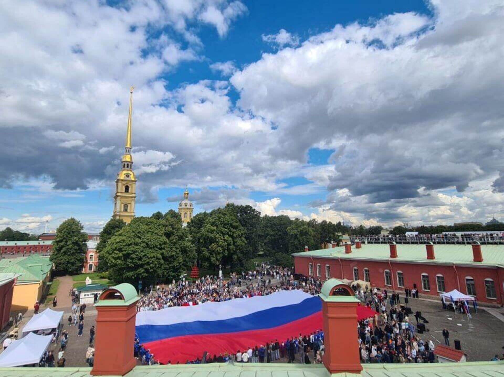 پرچم روسیه به ابعاد 30 در 50 متر در قلعه پیتر و پاول در سن پترزبورگ برافراشته شد