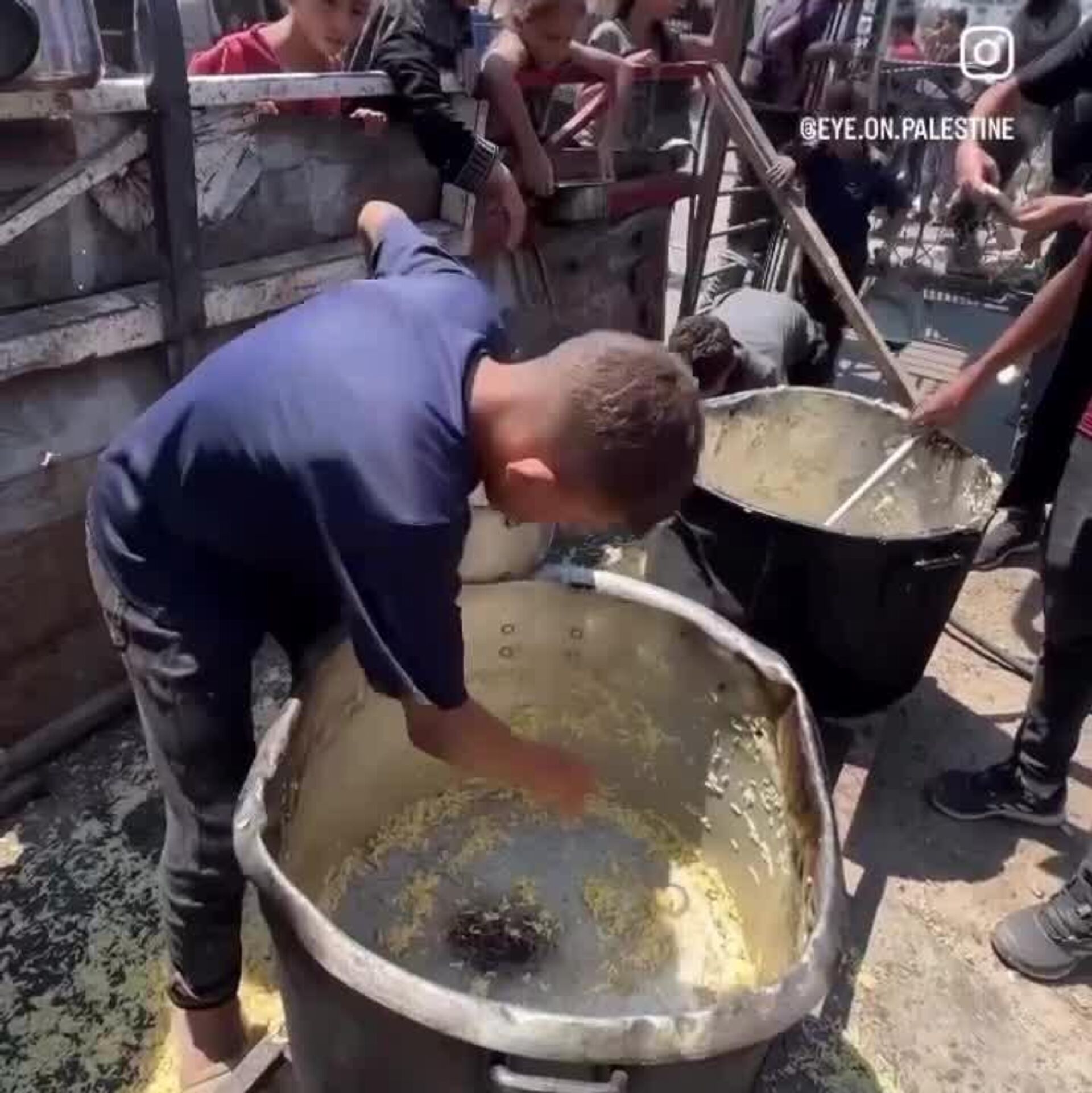 کودکی در غزه در دیگ های خالی به دنبال غذای مانده میگردد
