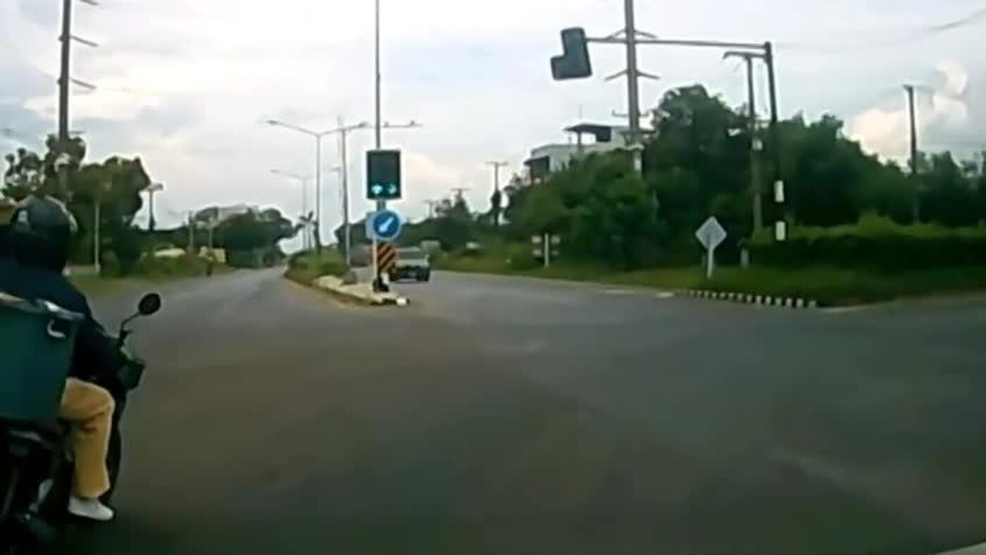 اسکوترسوار خوش شانس▫در تایلند، یک پیک که سوار بر اسکوتر بود، به طرز معجزه آسایی از برخورد با خودرویی که از چراغ قرمز عبور کرده بود، جان سالم به در برد. ما را در سایت و تلگرام اسپوتنیک دنبال کنید Sputnik Iran | Telegram