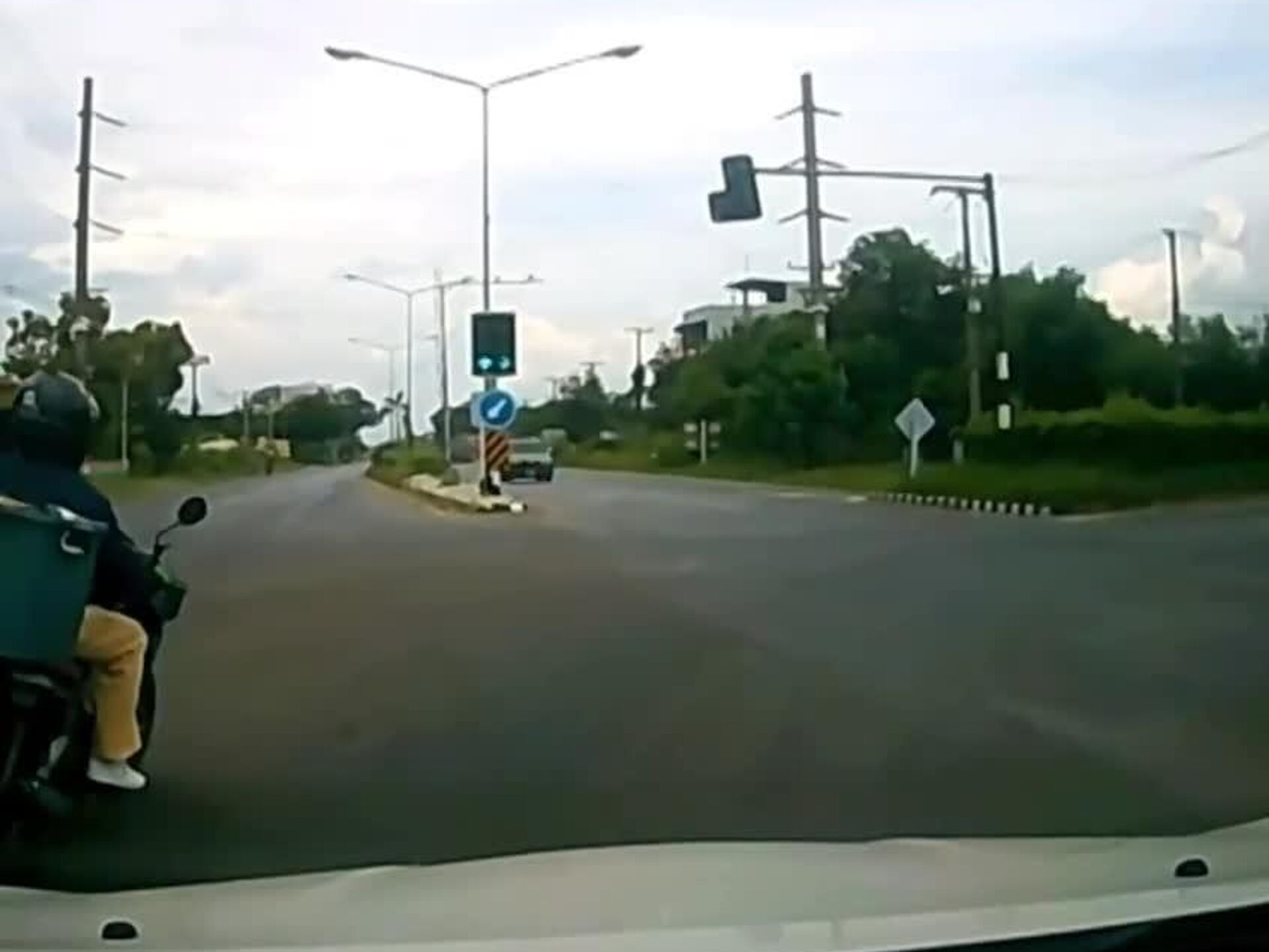 ▫در تایلند، یک پیک که سوار بر اسکوتر بود، به طرز معجزه آسایی از برخورد با خودرویی که از چراغ قرمز عبور کرده بود، جان سالم به در برد.