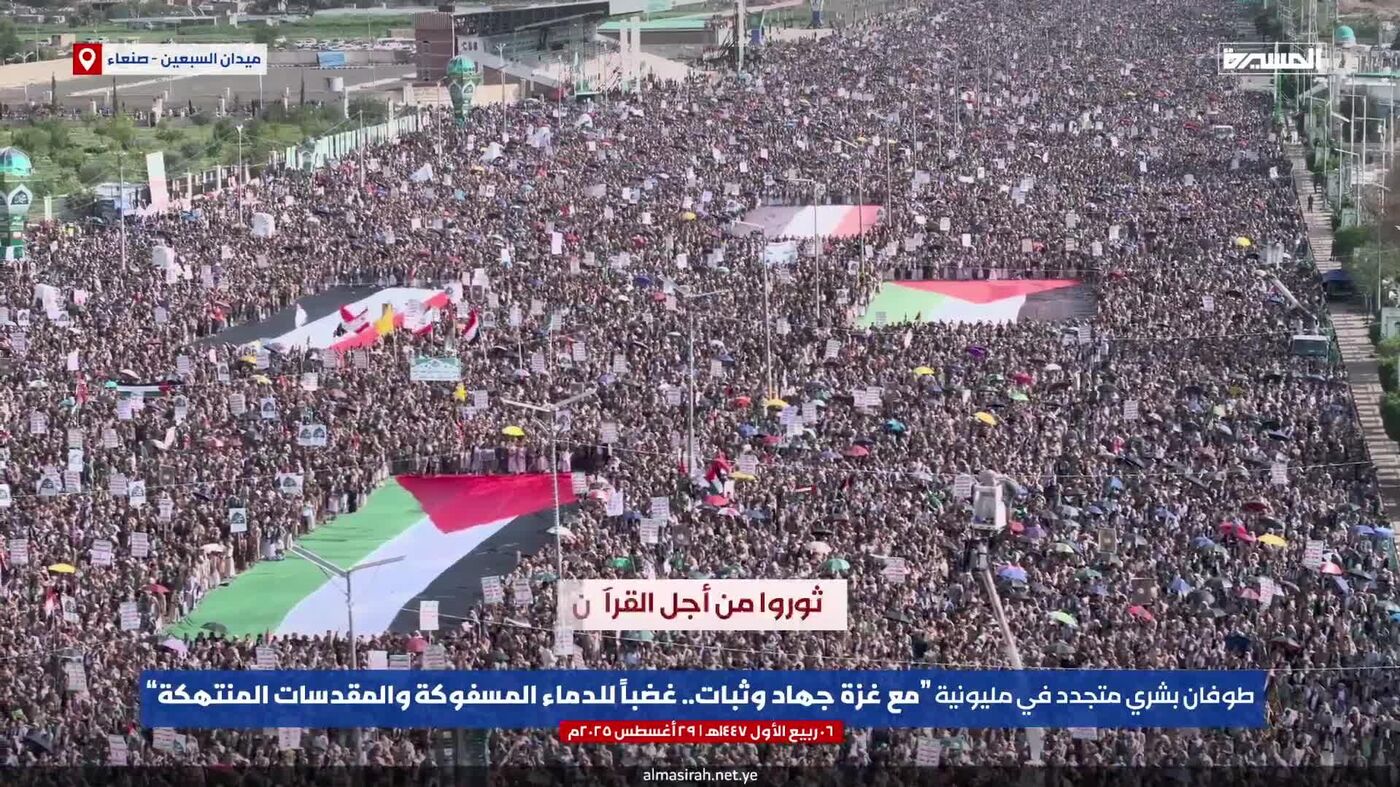20:56 29.08.2025 (بروز رسانی شده: 21:00 29.08.2025) راهپیمایی عظیم در حمایت از غزه در صنعا، یمن برگزار شد