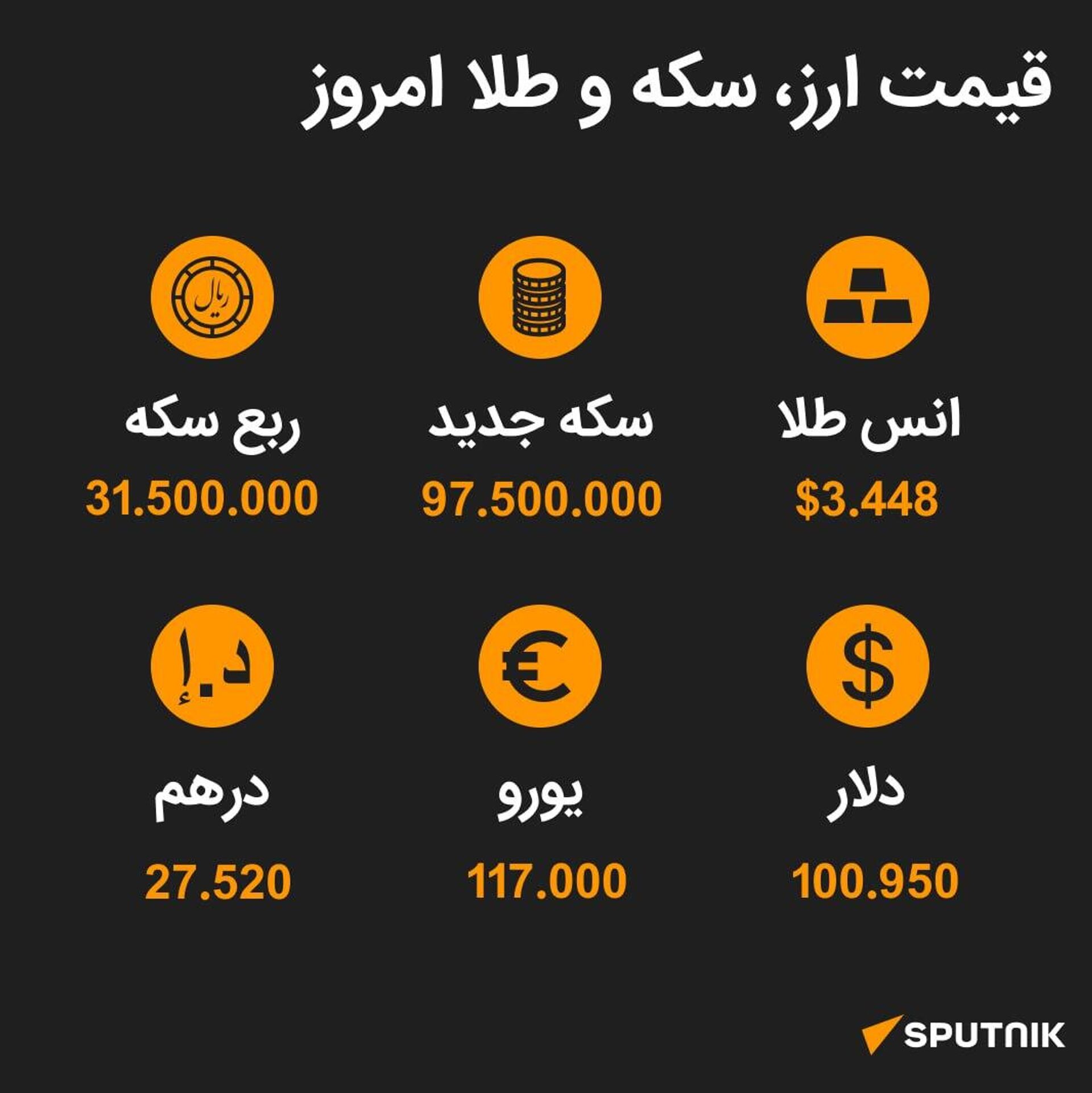 نرخ ارز، سکه و طلا تا ساعت 11:00 ما را در سایت و تلگرام اسپوتنیک دنبال کنید Sputnik Iran | Telegram