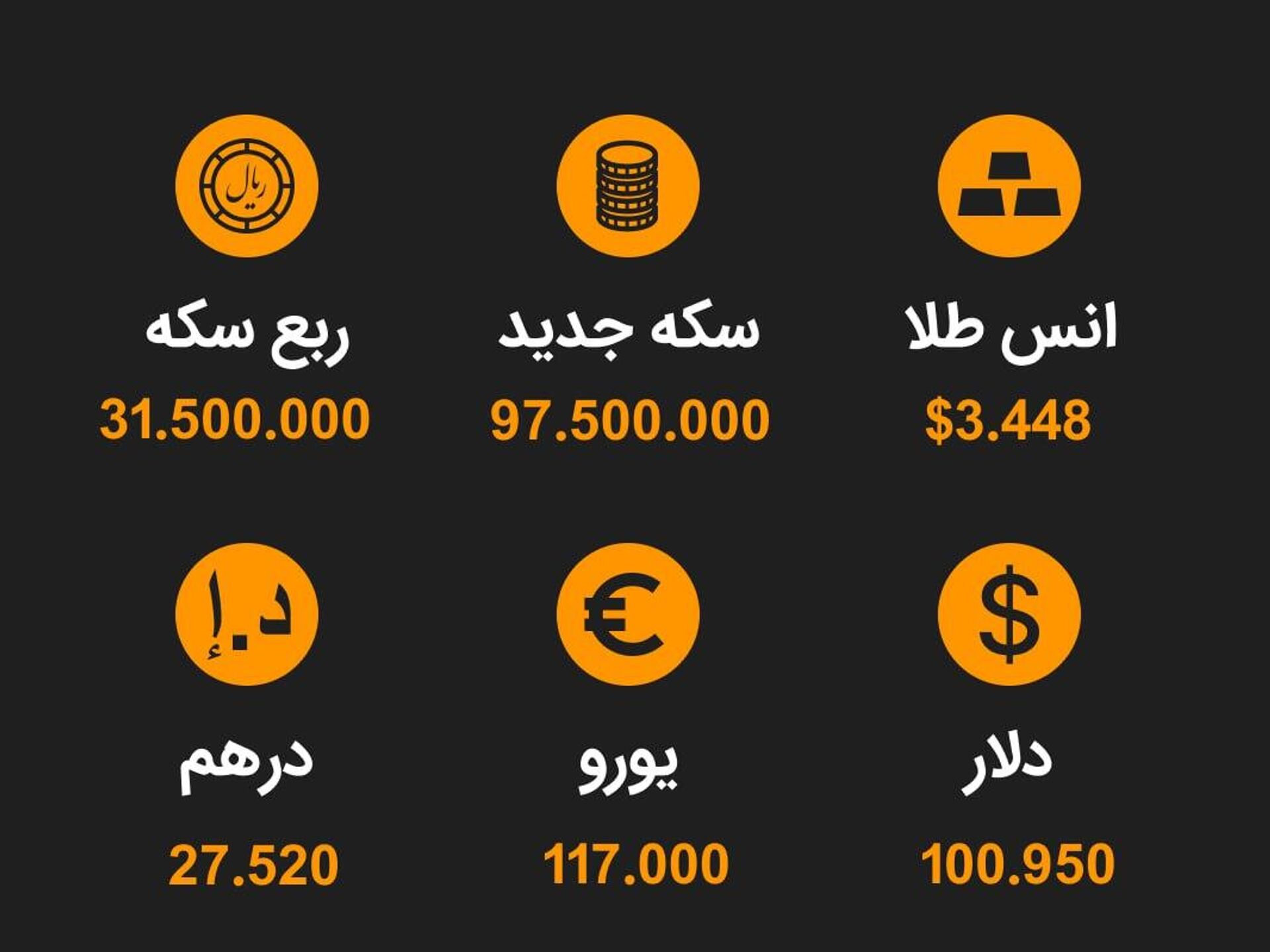 10:57 30.08.2025 (بروز رسانی شده: 11:00 30.08.2025) نرخ ارز، سکه و طلا تا ساعت 11:00