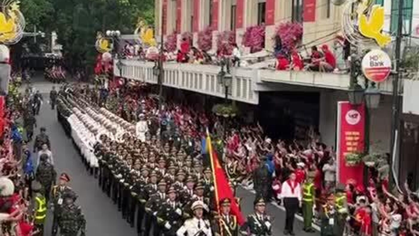 نیروهای چینی در تمرین رژه به مناسبت هشتادمین سالگرد روز ملی ویتنام شرکت کردندآنها آهنگ «انگار عمو هو در روز پیروزی با ما بود» را اجرا کردند. ما را در سایت و تلگرام اسپوتنیک دنبال کنید Sputnik Iran | Telegram