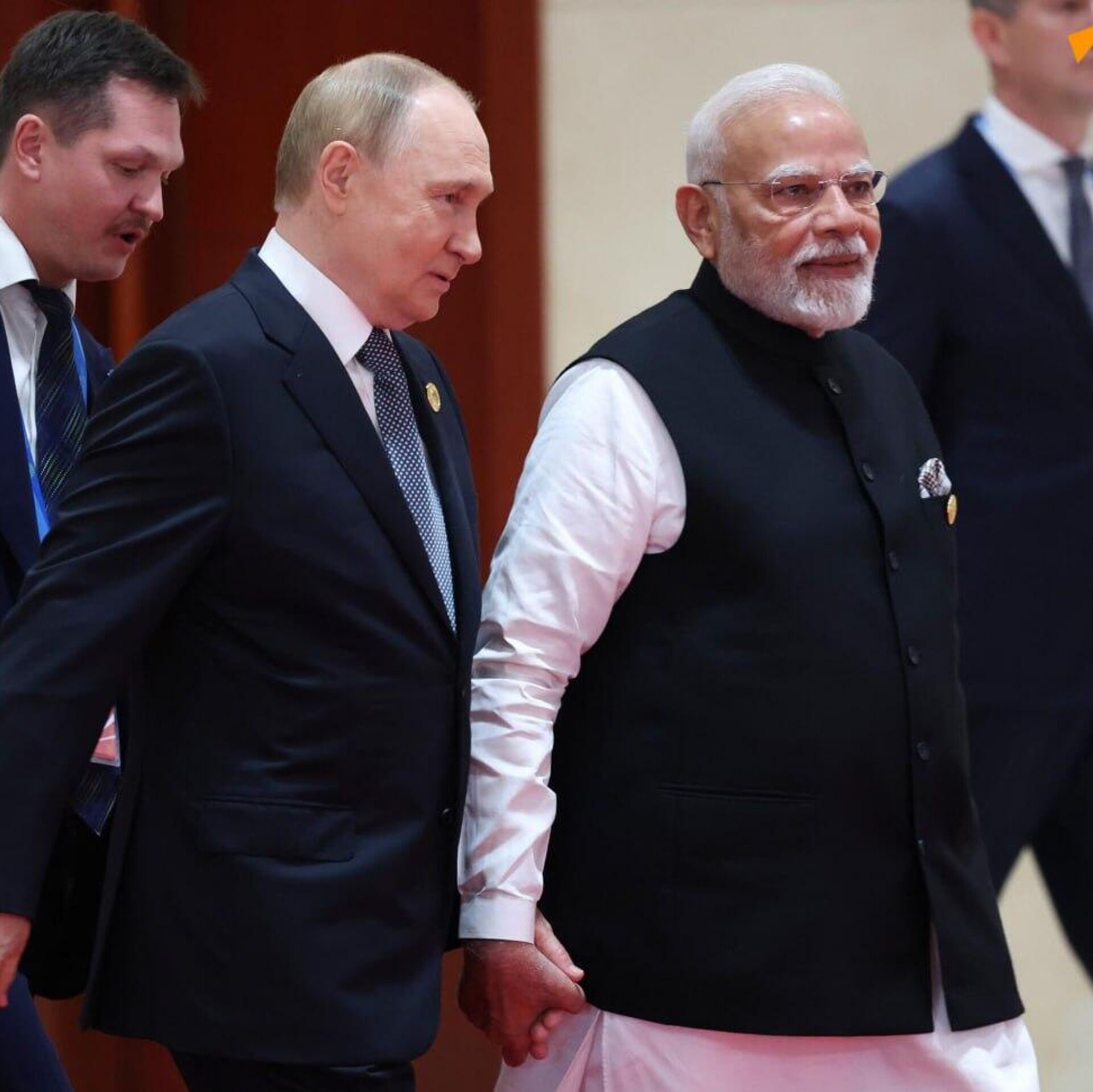 1 - ولادیمیر پوتین، رئیس جمهور روسیه و نارندرا مودی، نخست وزیر هند در تیانجین