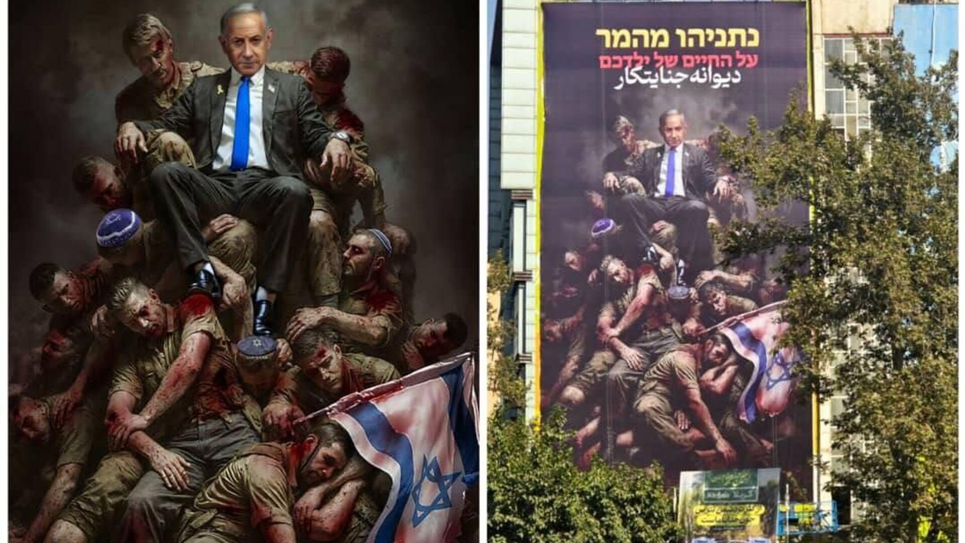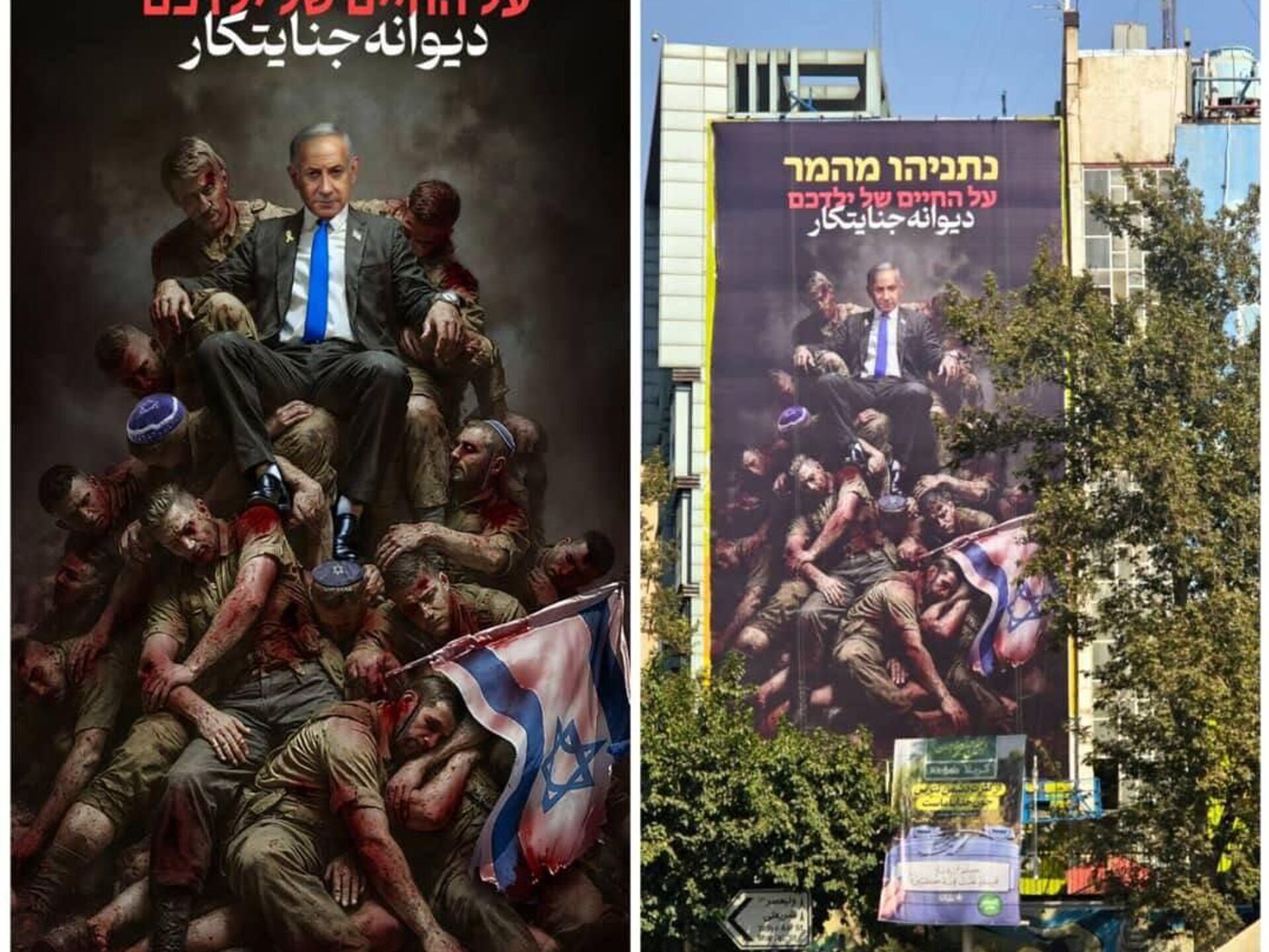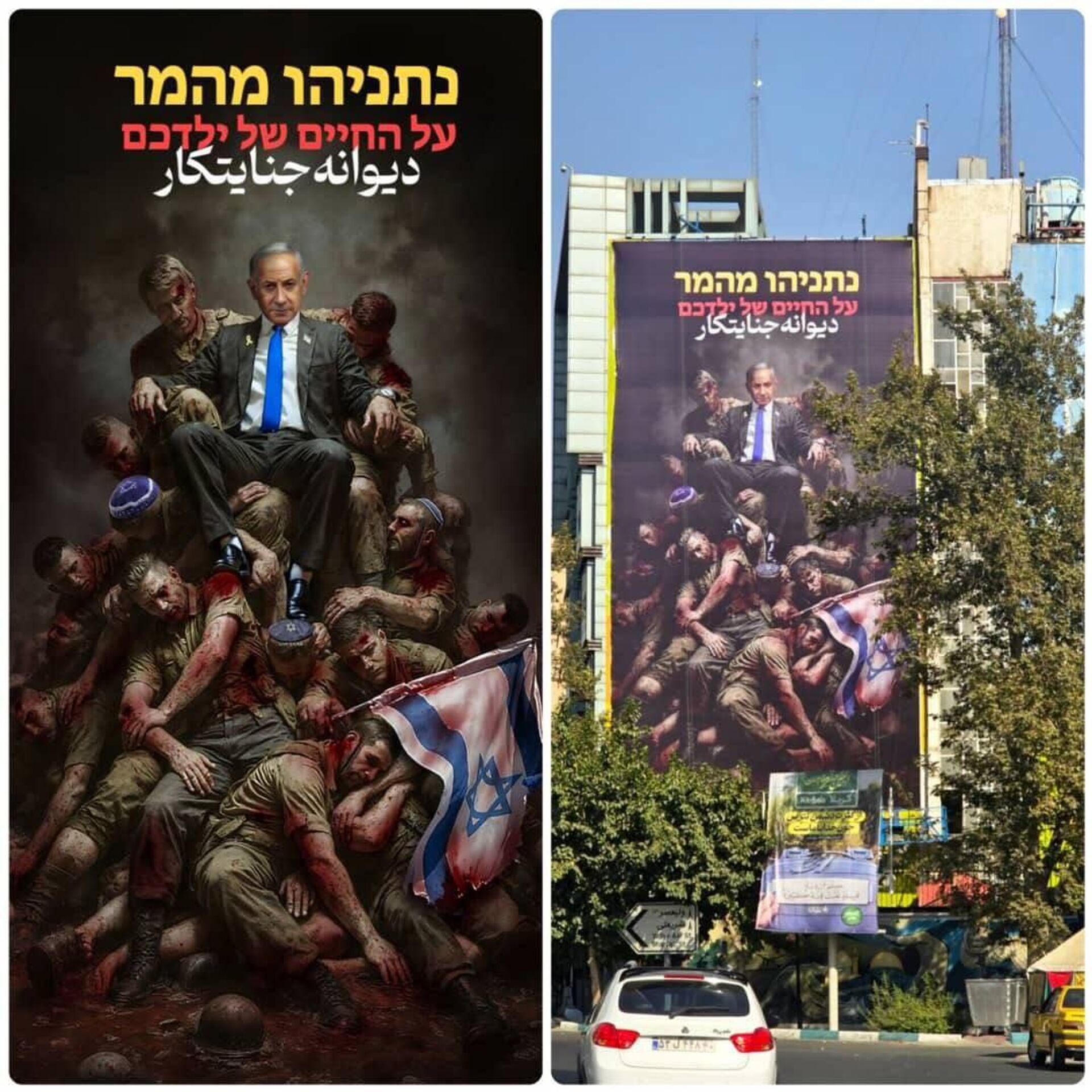 طرح جدید دیوارنگاره میدان فلسطین تهران با شعار دیوانه جنایتکار رونمایی شد