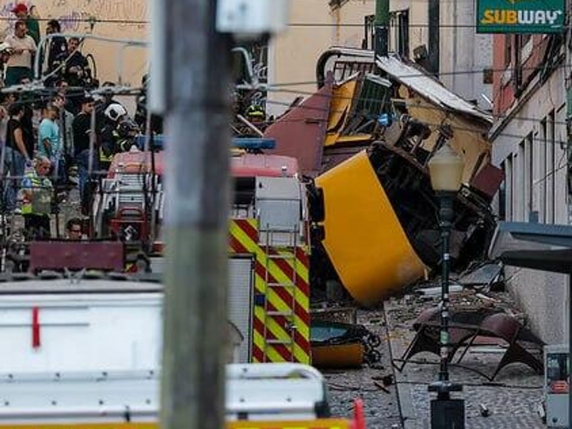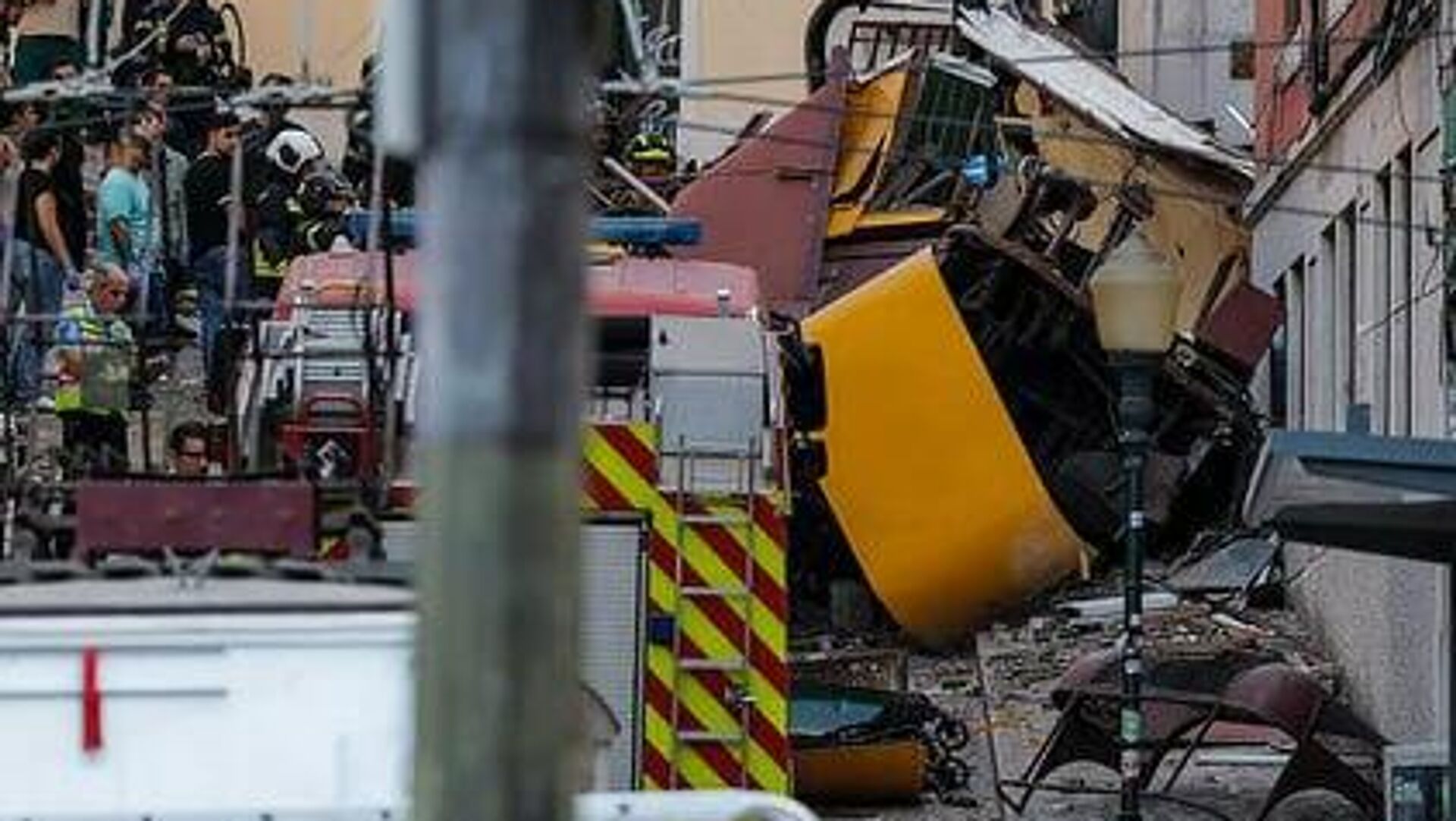 قطار کابلی مشهور در مرکز لیسبون ناگهان از ریل خارج و سقوط کرد