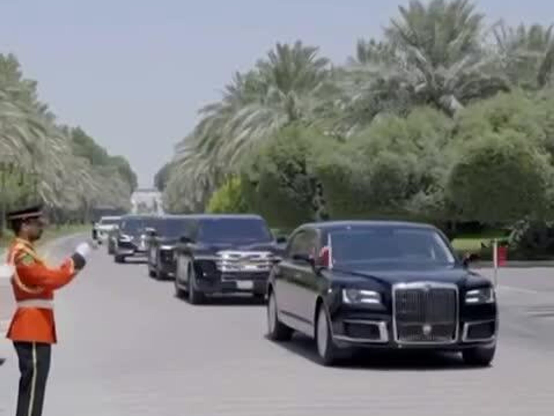 پادشاه بحرین پشت فرمان یک خودروی آئوروس که پوتین به او هدیه داده