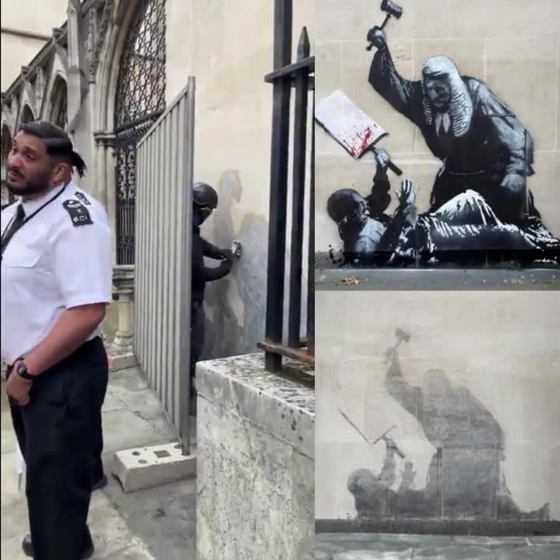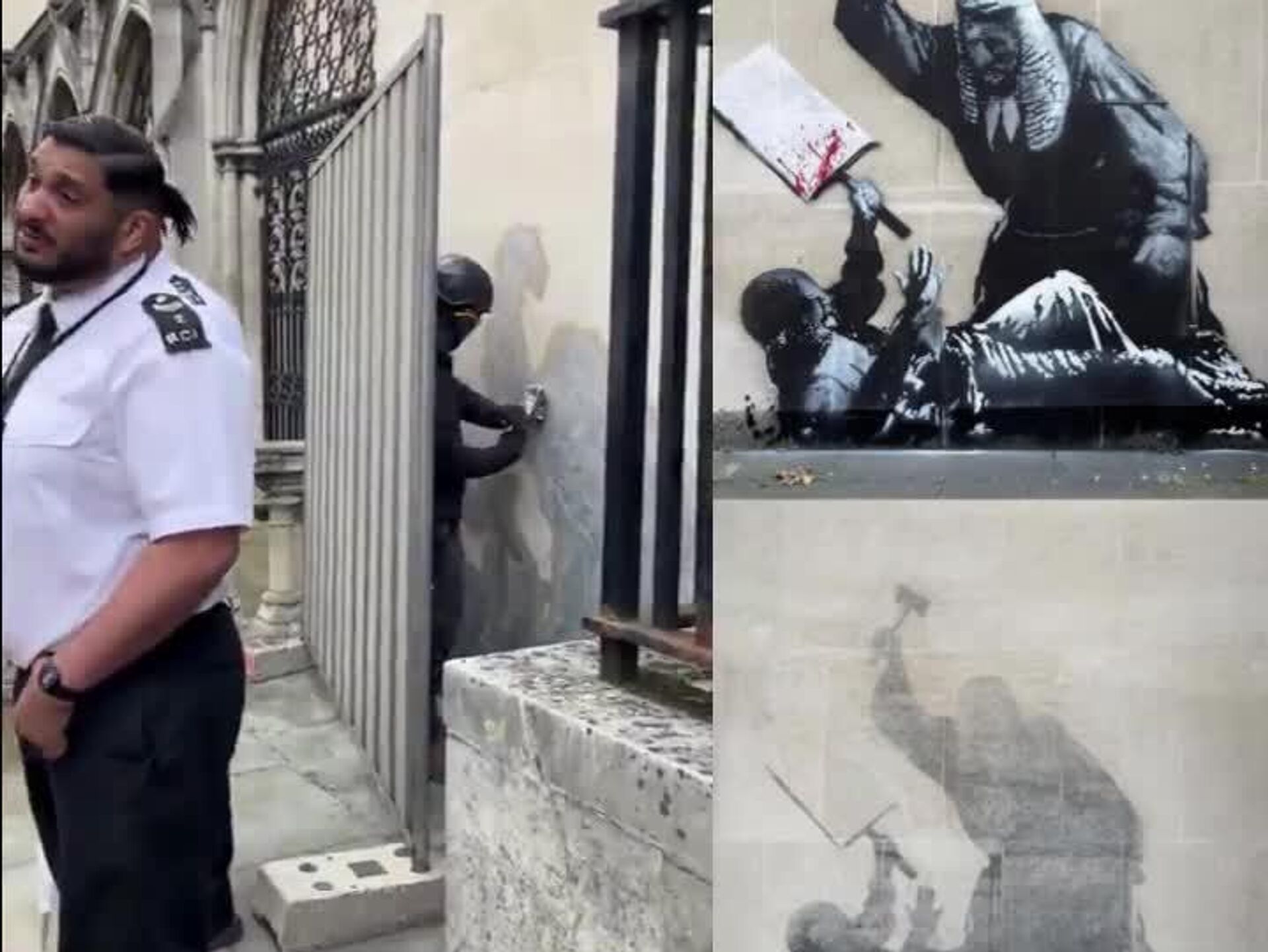 رسانه غربی از تلاش برای پاک کردن نقاشی بنکسی از ساختمان دادگاه سلطنتی لندن خبر داد