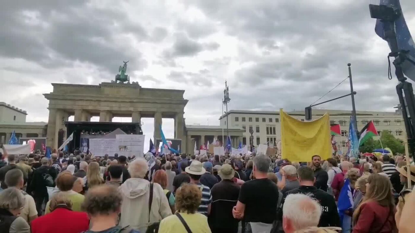 حدود 20 هزار نفر امروز به خیابانهای برلین آمدند تا علیه جنگ و مسابقه تسلیحاتی، برای صلح در اروپا و نوار غزه اعتراض کنند