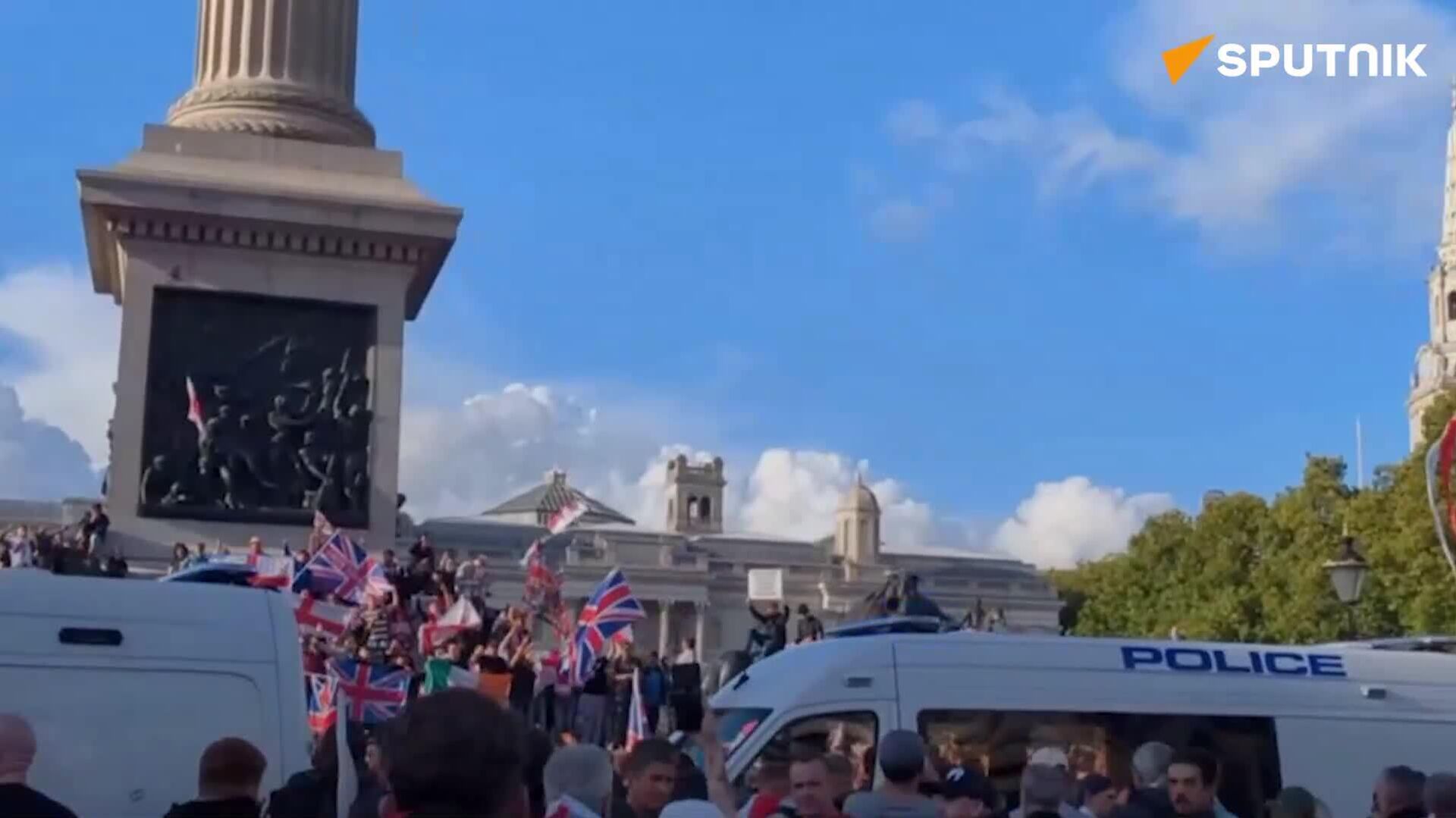 شرکتکنندگان در تجمع فعالان راستگرا، پایه ستون نلسون در میدان ترافالگار در مرکز لندن را تصرف کردندپیش از این، مأموران پلیس برخی از تظاهرکنندگان را در محله دولتی وایتهال محاصره کرده و آنها را در میدان ترافالگار نگه داشتند. ما را در سایت و تلگرام اسپوتنیک دنبال کنید Sputnik Iran | Telegram