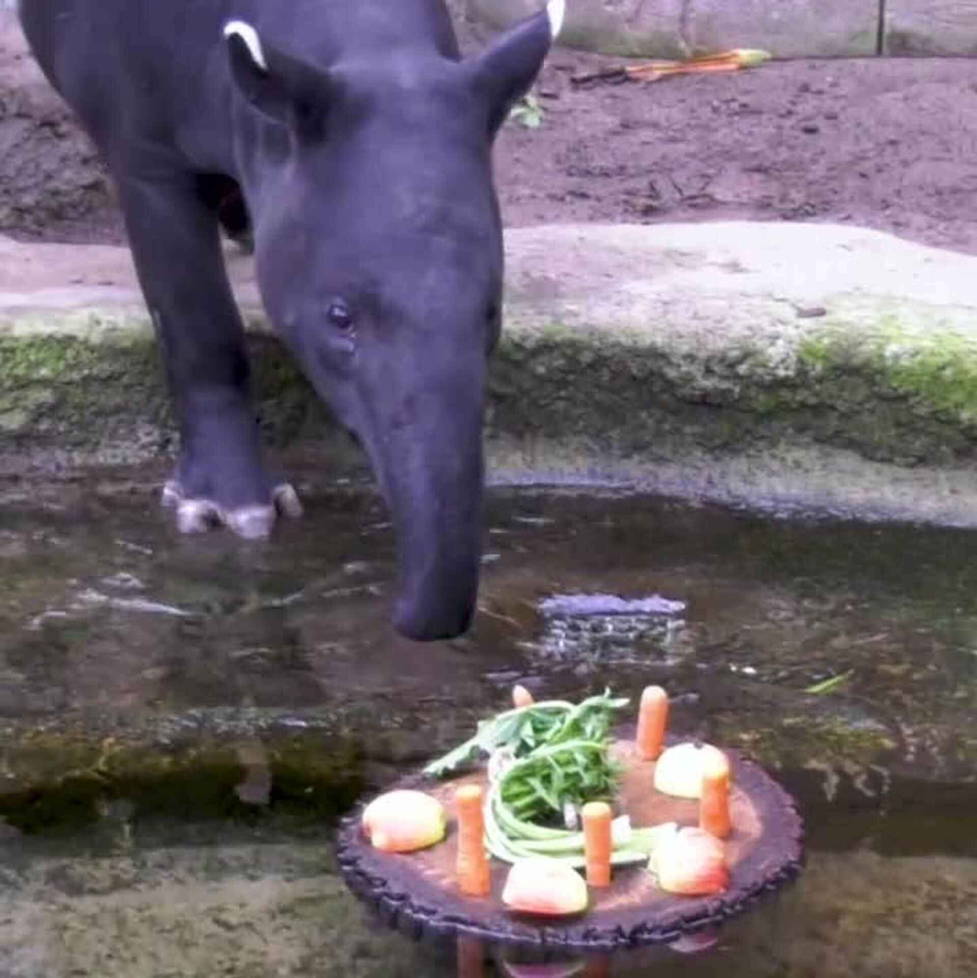 تاپیر مالایی باغوحش برلین امروز دو ساله شد به همین مناسبت، او خوراکی خوشمزه و مفید دریافت کرد که روی یک "بشقاب" چوبی شناور سرو شد. ما را در سایت و تلگرام اسپوتنیک دنبال کنید Sputnik Iran | Telegram