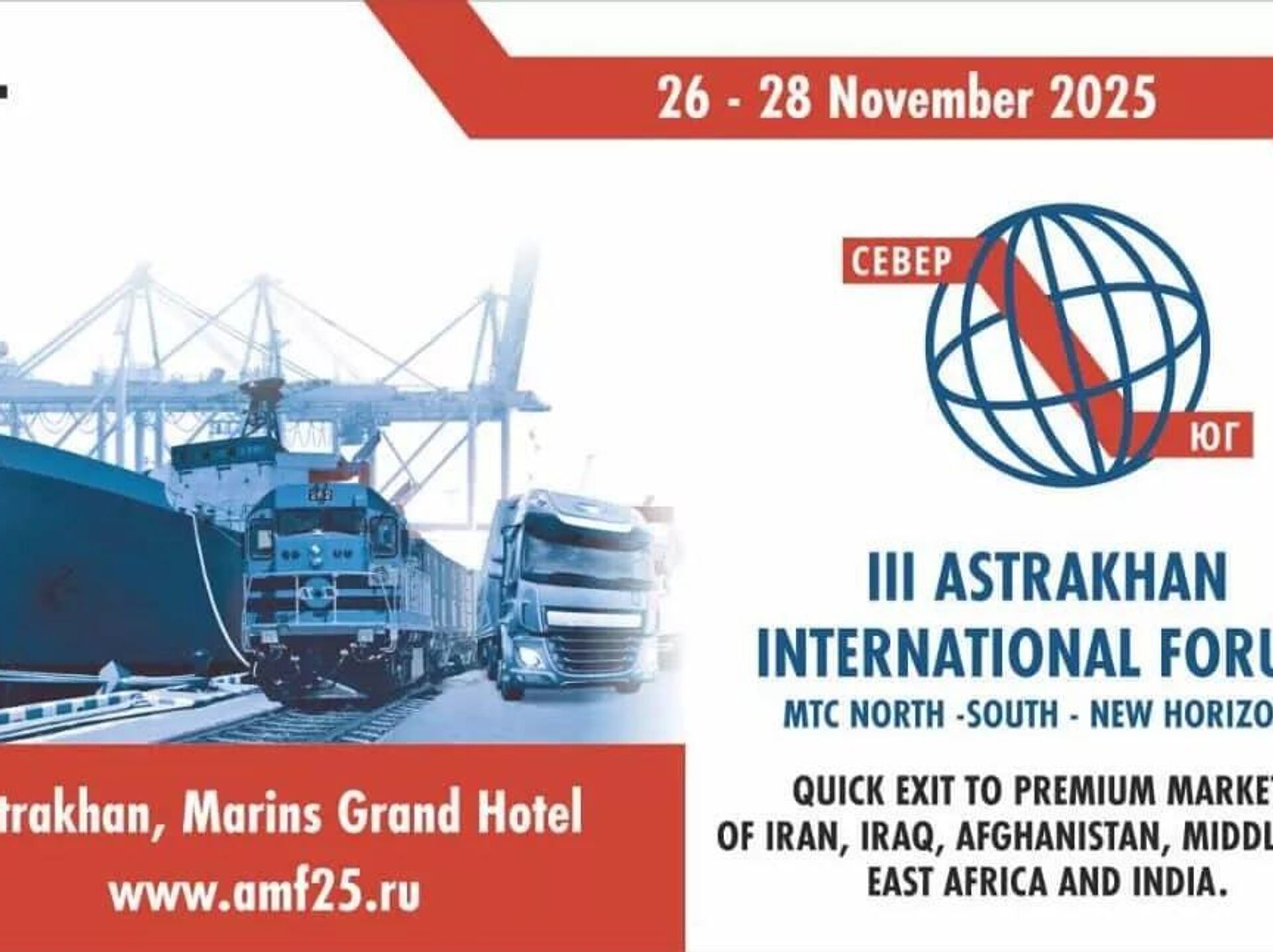 سومین مجمع بینالمللی آستراخان با عنوان "کریدور حملونقل بینالمللی شمال-جنوب: افقهای جدید و دسترسی سریع به بازارهای برتر روسیه" از 26 تا 28 نوامبر در آستراخان برگزار میشود
