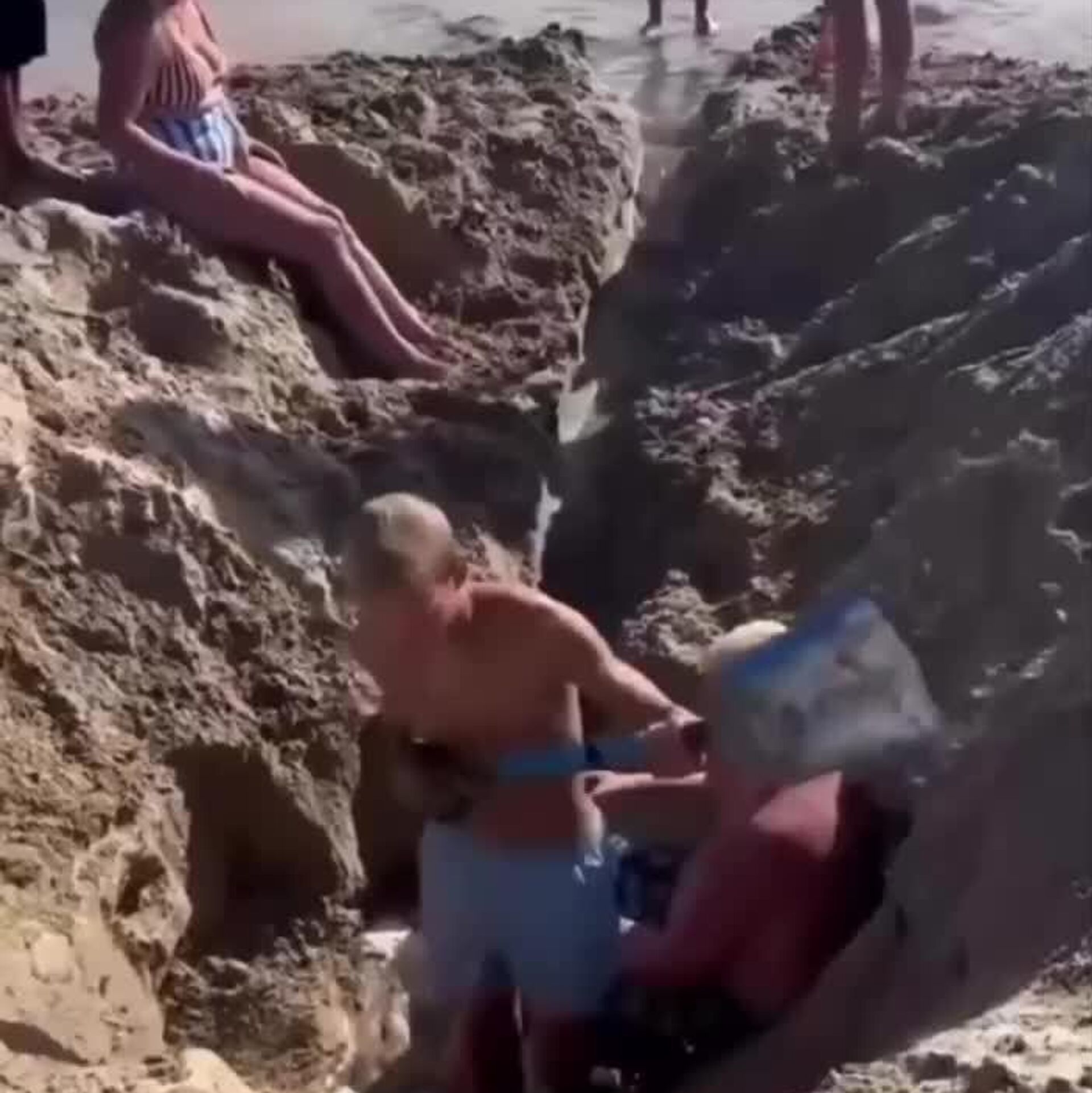 ▫شاهدان عینی گزارش دادند که تعداید از استراحت کنندگان گودالی کندند و از آن یک استخر کوچک درست کردند. بچهها داخل آن نشستند و بلافاصله خود را در دام یافتند. شن و ماسه به معنای واقعی کلمه آنها را "در چنگال خود می گرفت" و آب اقیانوس به سرعت گودال را پر می کرد اما در نهایت امدادگران و بزرگسالان توانستند بچهها را قبل از بحرانی شدن اوضاع از گودال بیرون بکشند.