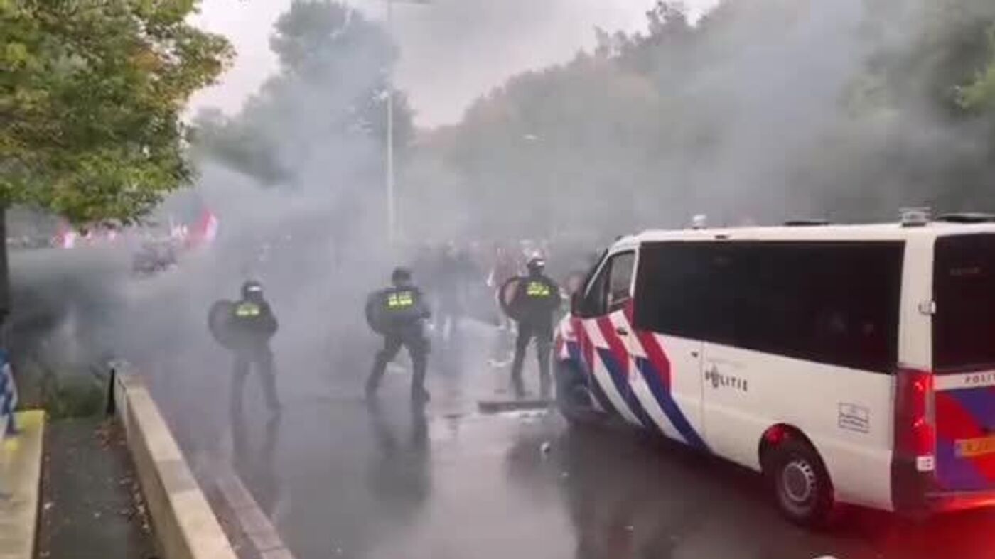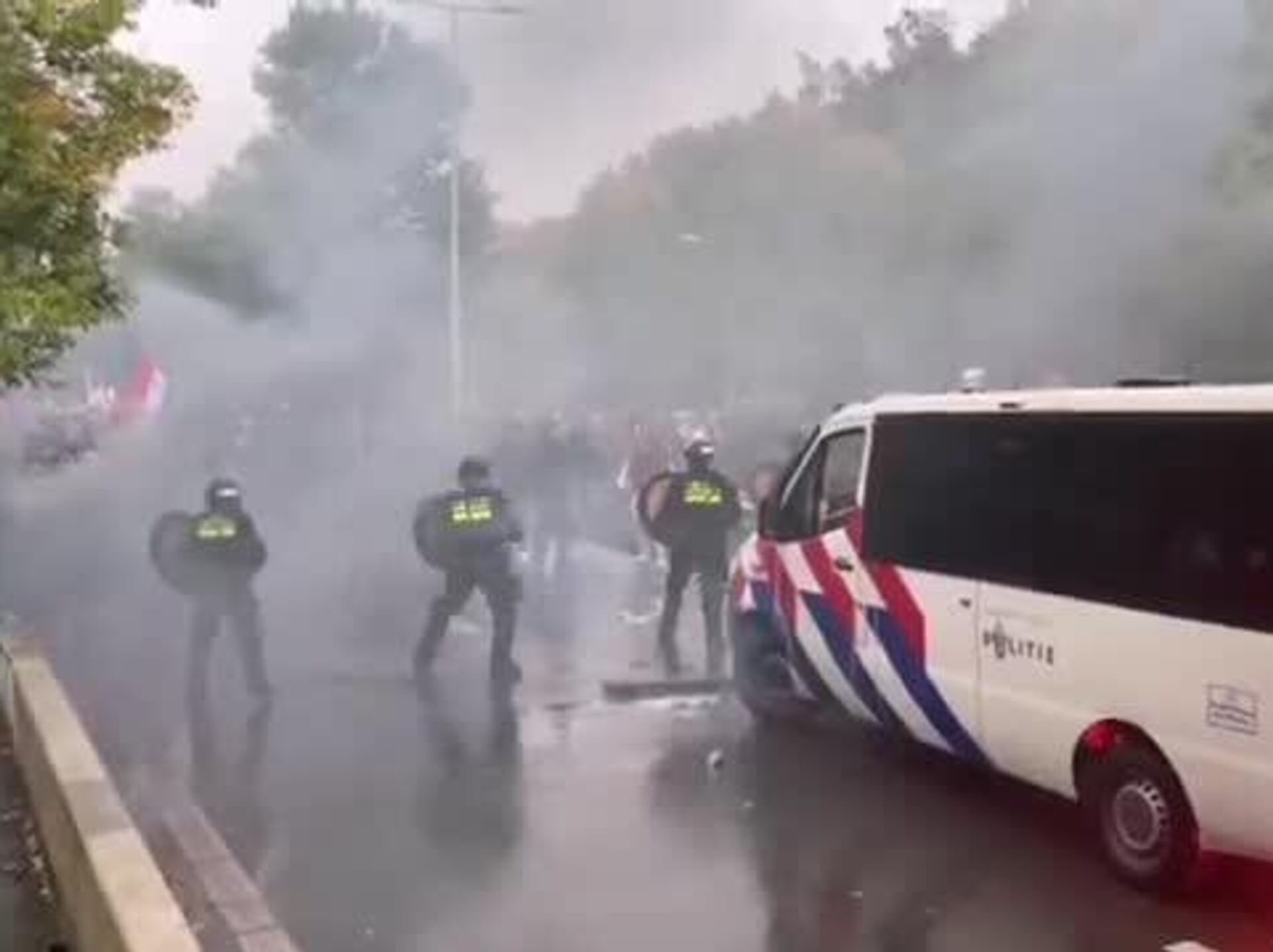 پلیس با باتوم با معترضان در لاهه درگیر شد و آنها را دستگیر کرد. اعتراض علیه سیاست مهاجرتی هلند زمانی به خشونت کشیده شد که راهپیمایان بزرگراه A12 را مسدود کردند.