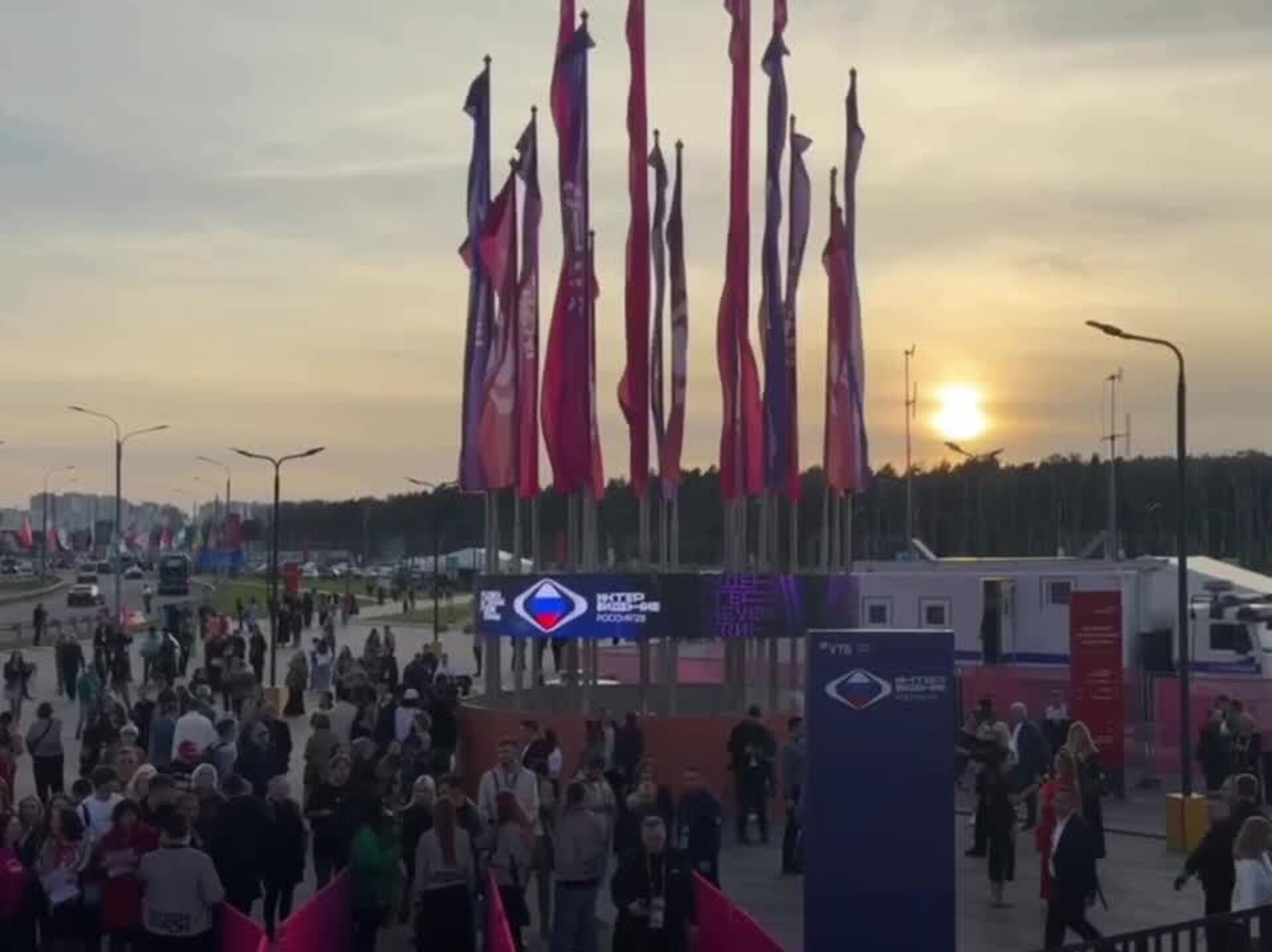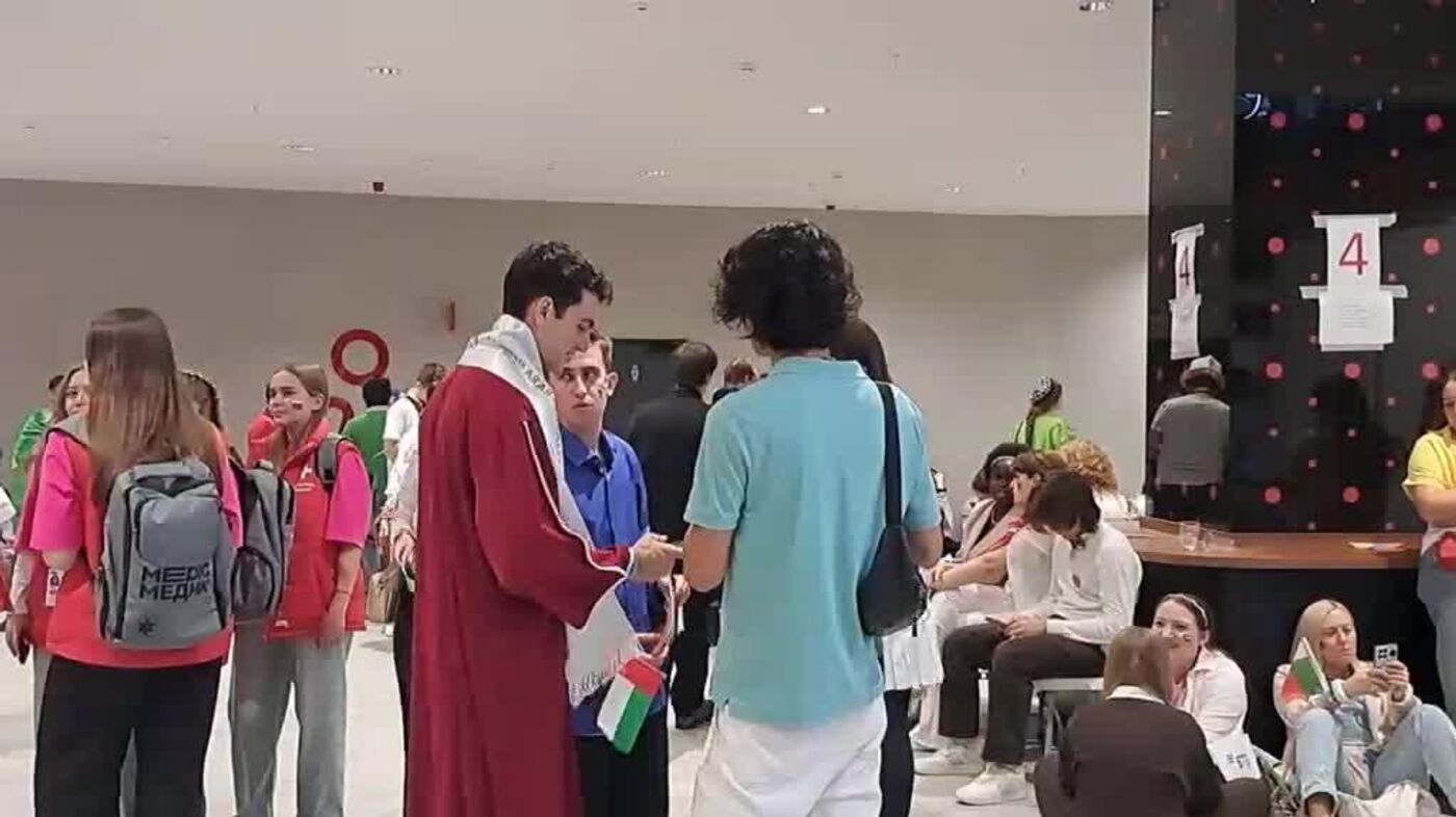 در میان آنها تماشاگرانی با لباسهای ملی و پرچم کشورهای شرکتکننده در مسابقه دیده میشوند.