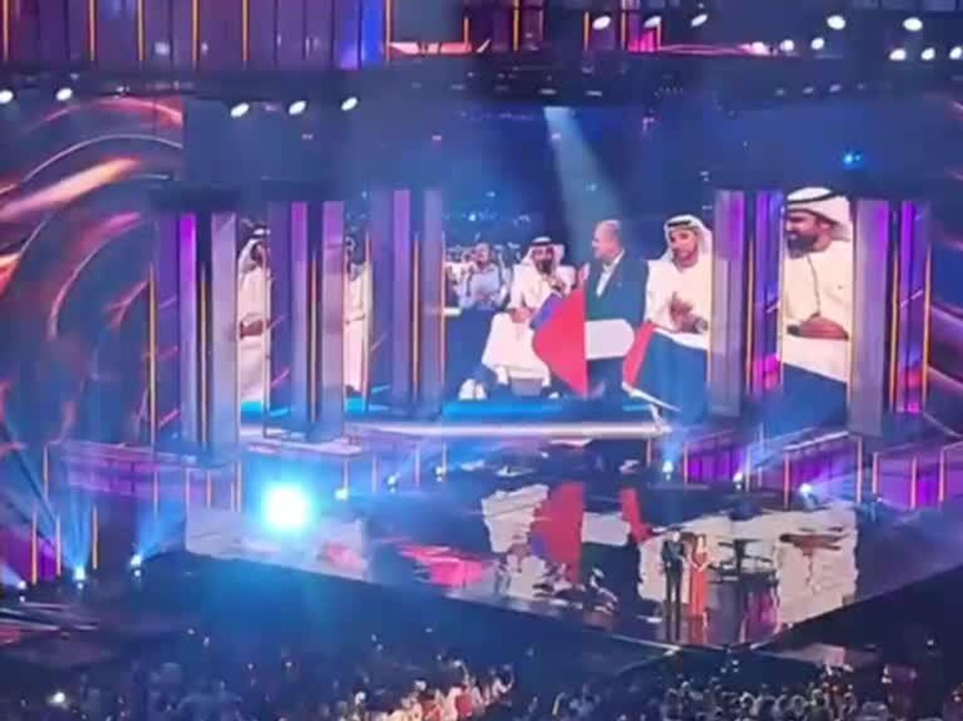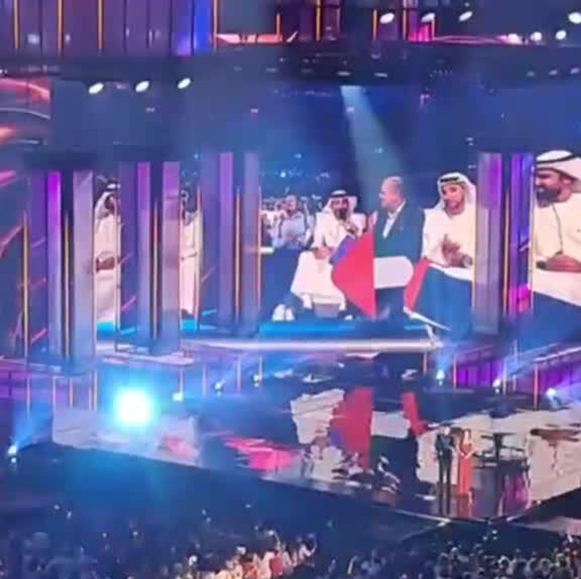 سیف العلی، خواننده اماراتی، آهنگ کالینکا-مالینکا را به زبان روسی خواند و حضار نیز با او همراه شدند