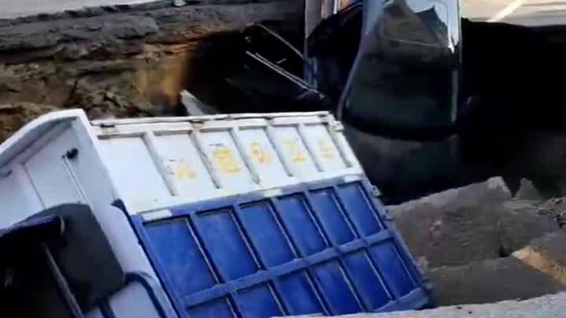 در شهر 10 میلیونی ژوکو در استان هنان چین، ناگهان در جادهای زمین فرو ریخت