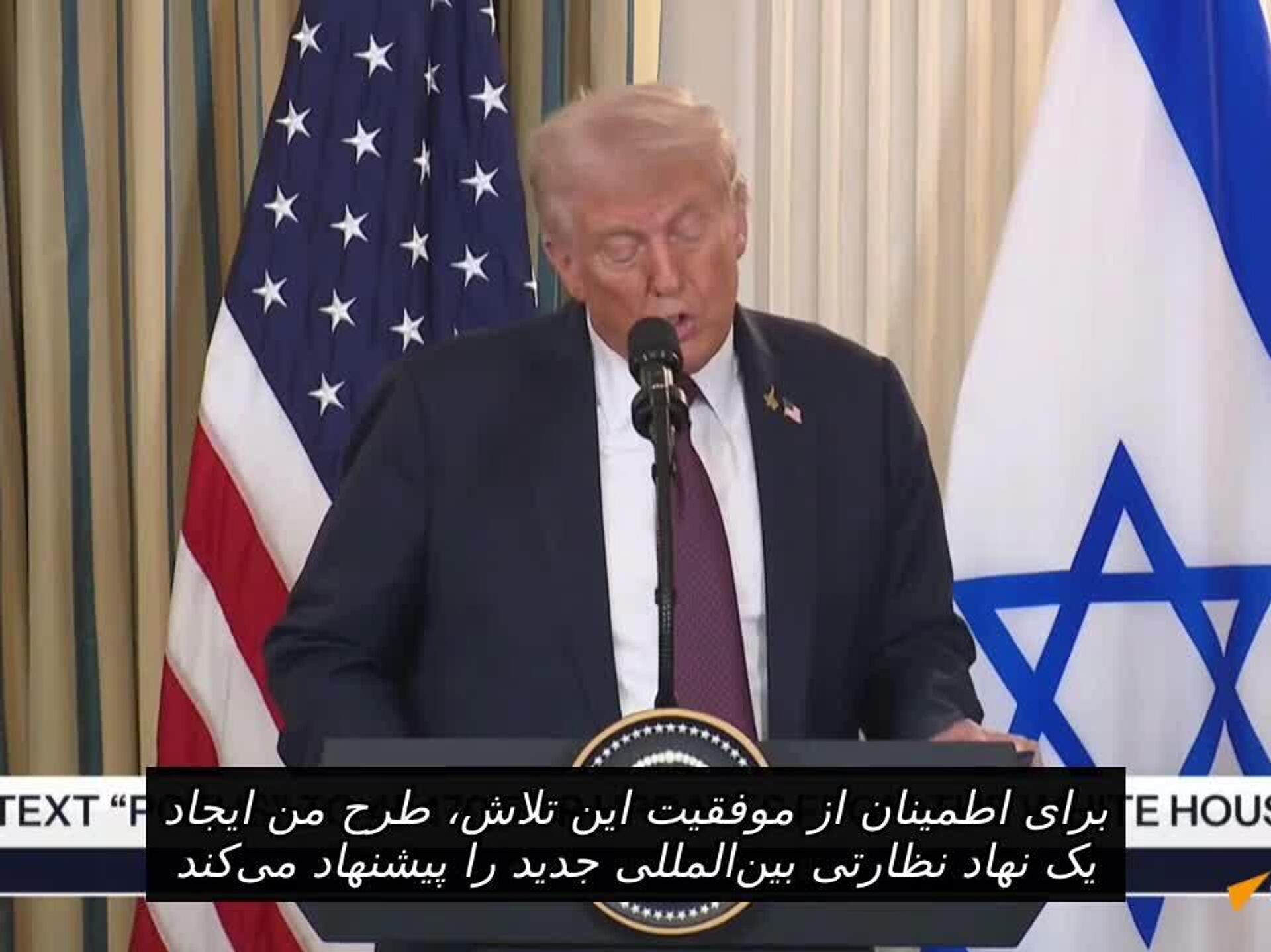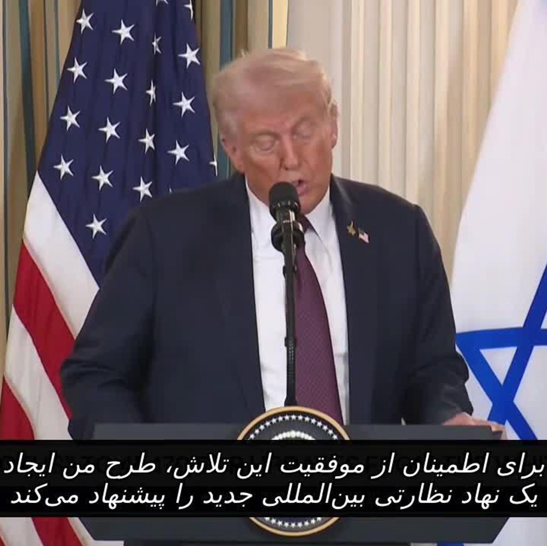 ▫دونالد ترامپ در کنفرانس خبری خود با نتانیاهو، از ایجاد هیئت صلح، یک نهاد نظارتی بینالمللی، برای تضمین موفقیت این تلاش خبر داد و اظهار داشت که این امر برای اطمینان از عملکرد صحیح این طرح ضروری است.