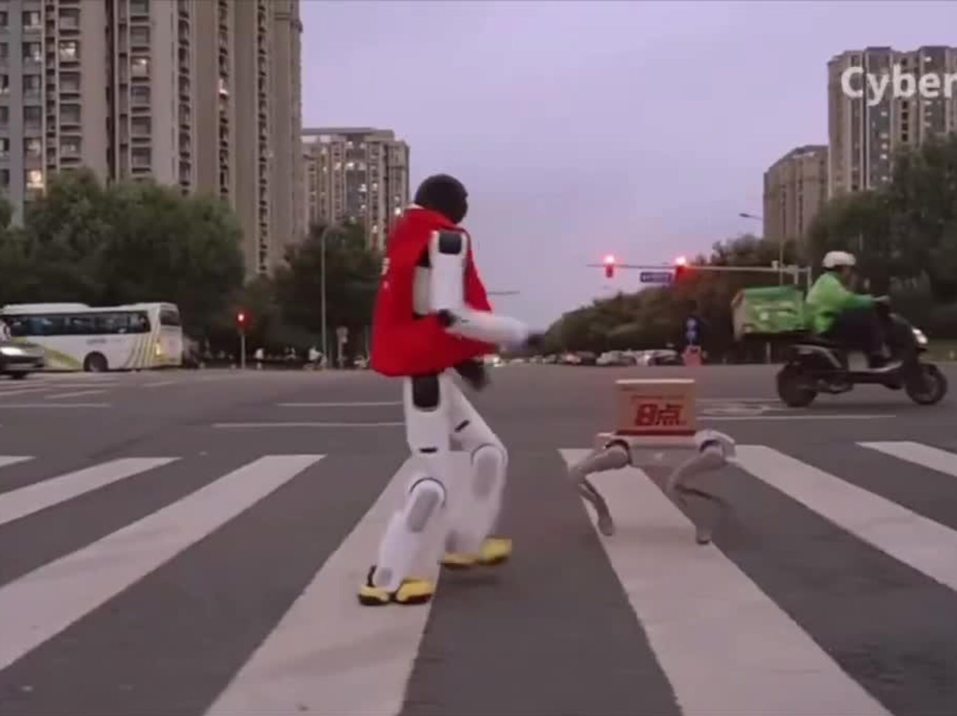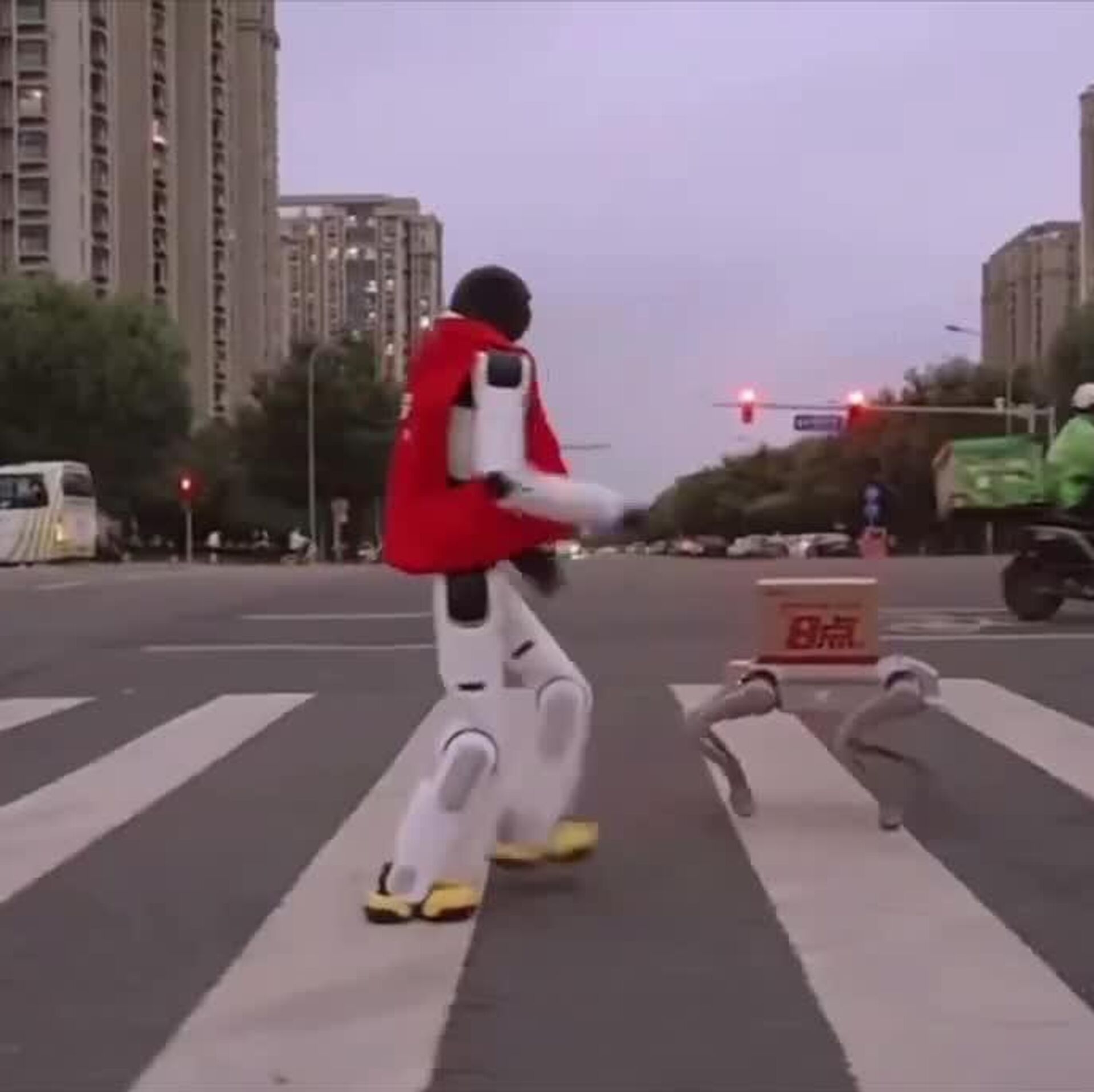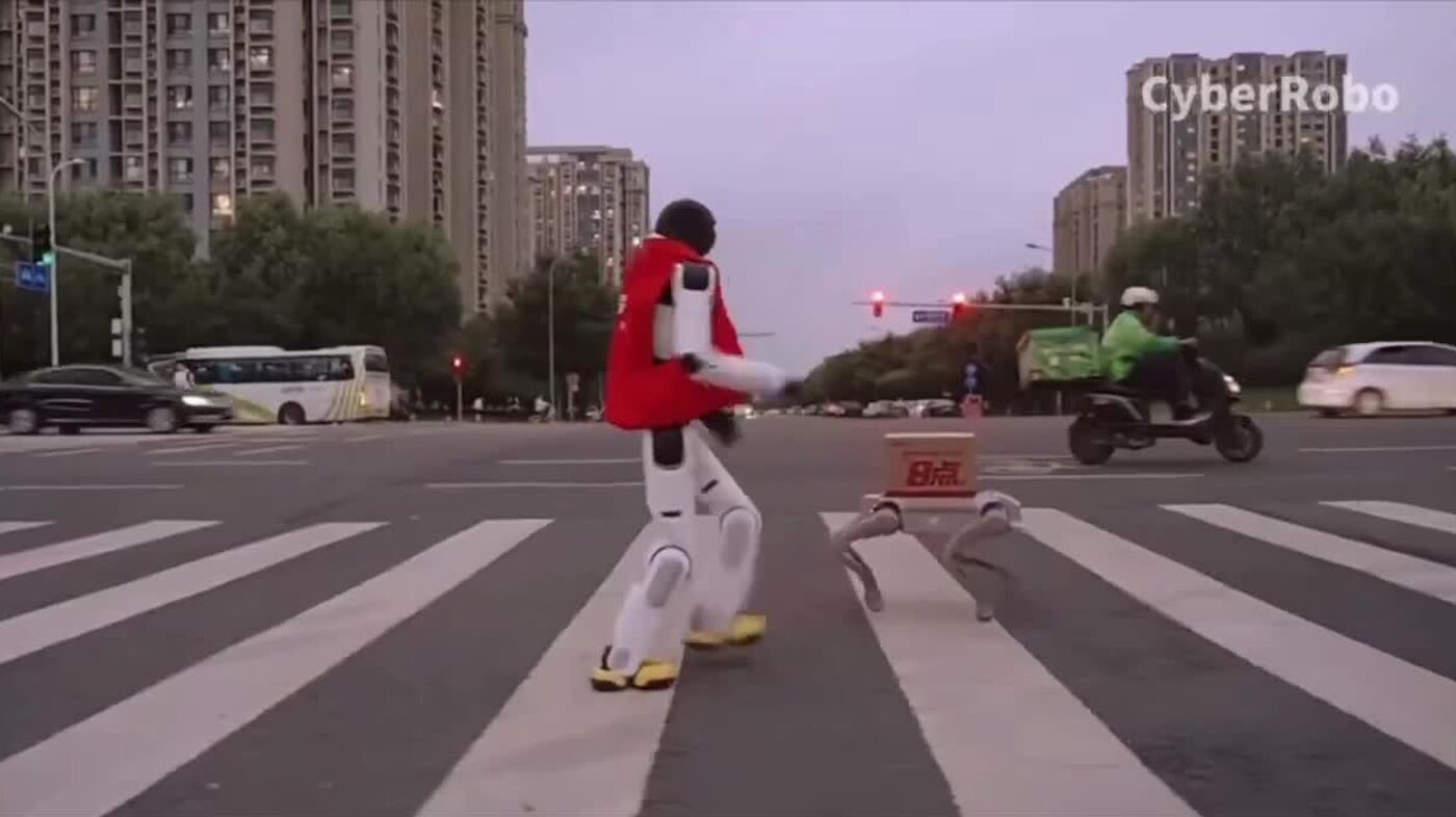 در چین ربات انسان نما و سگ رباتیک دو نفری سفارشات را به مشتریان می رسانند