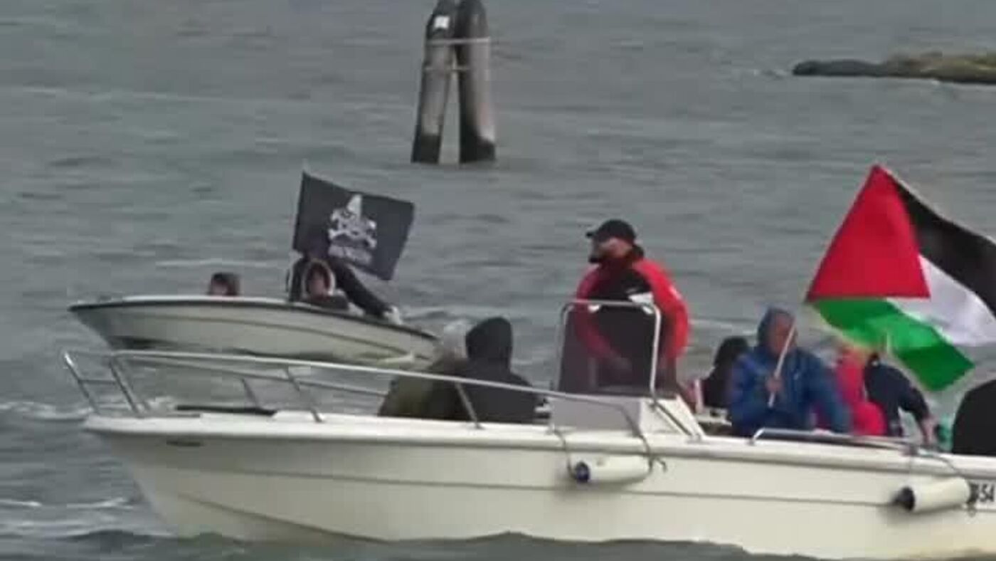▫در همین حال، در ونیز، چندین فعال با شعارهایی مانند "جنگ را متوقف کنید، نسلکشی را متوقف کنید" تلاش کردند تا جلوی ورود کشتی MCS Melani III را که عصر روز 29 سپتامبر وارد این بندر شد، بگیرند.