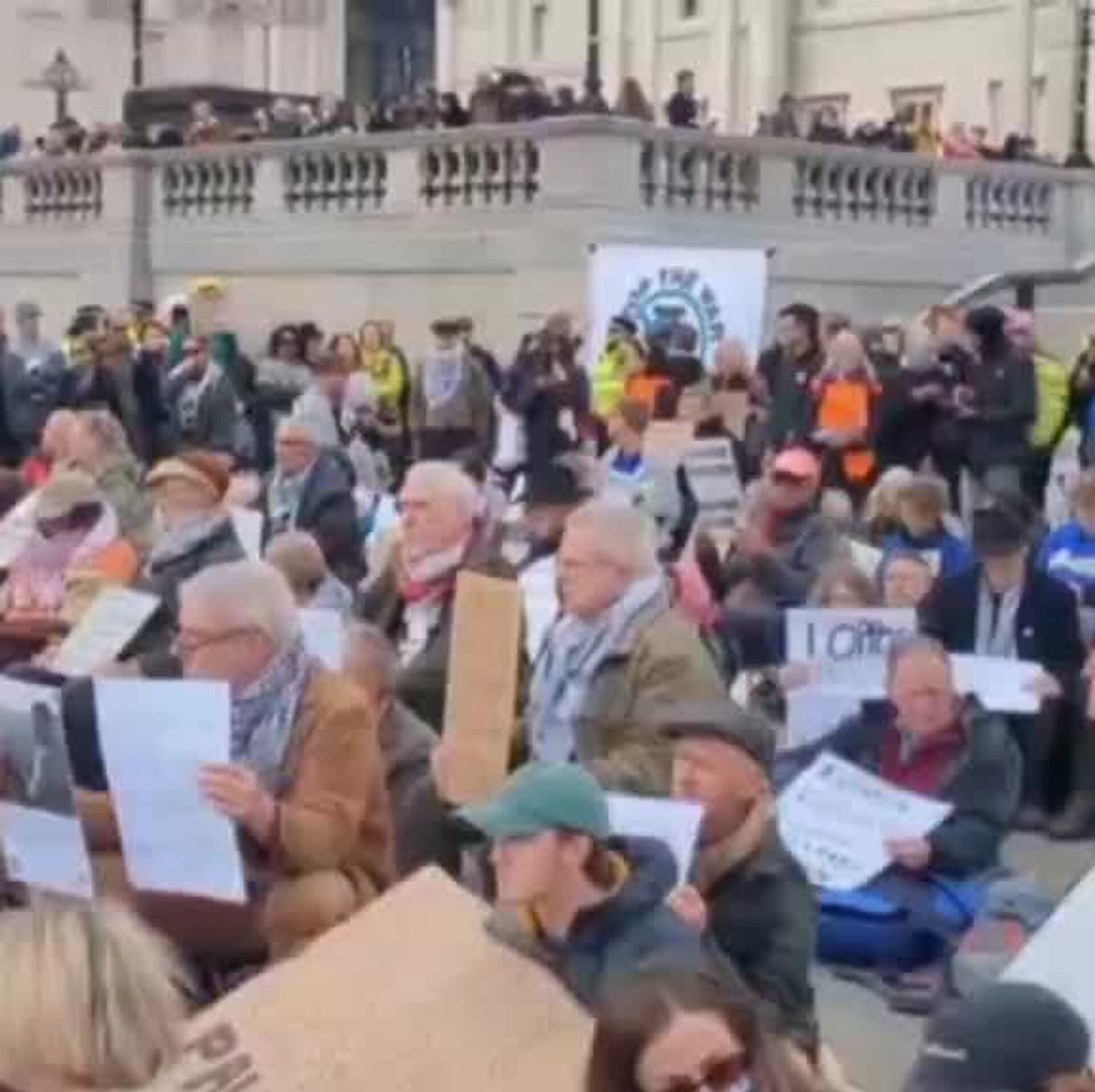شرکتکنندگان در این تجمع در طول روز در میدان ترافالگار تجمع کردند. آنها شعار «من با نسلکشی مخالفم، من از اقدام فلسطین حمایت میکنم» را روی پلاکاردهای خود نوشتند. کمی پس از شروع تجمع، پلیس شروع به دستگیری گزینشی آنها کرد.