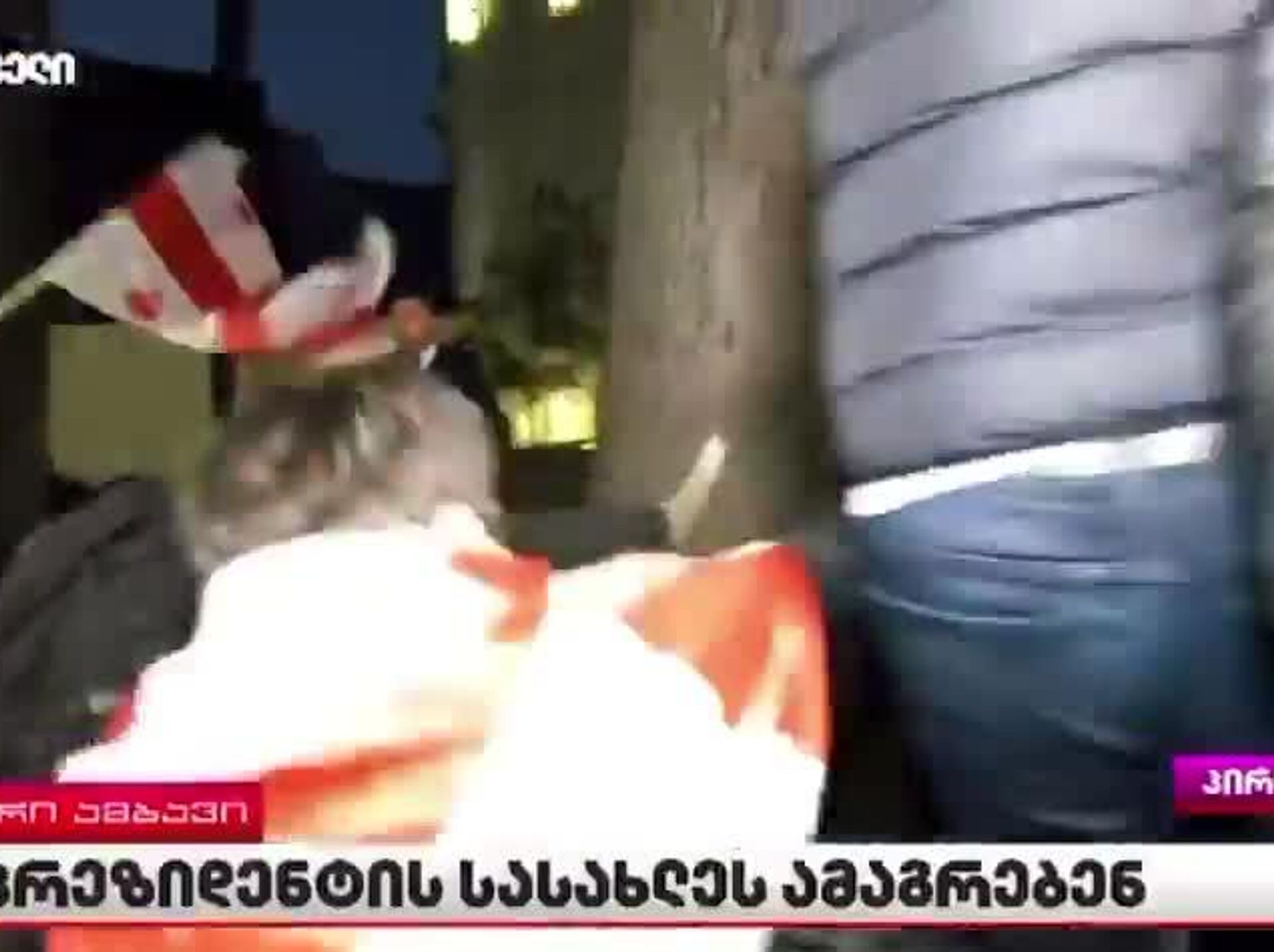 تلویزیون گرجستان اعلام کرد که پلیس از اسپری فلفل برای متفرق کردن جمعیت استفاده کرد.