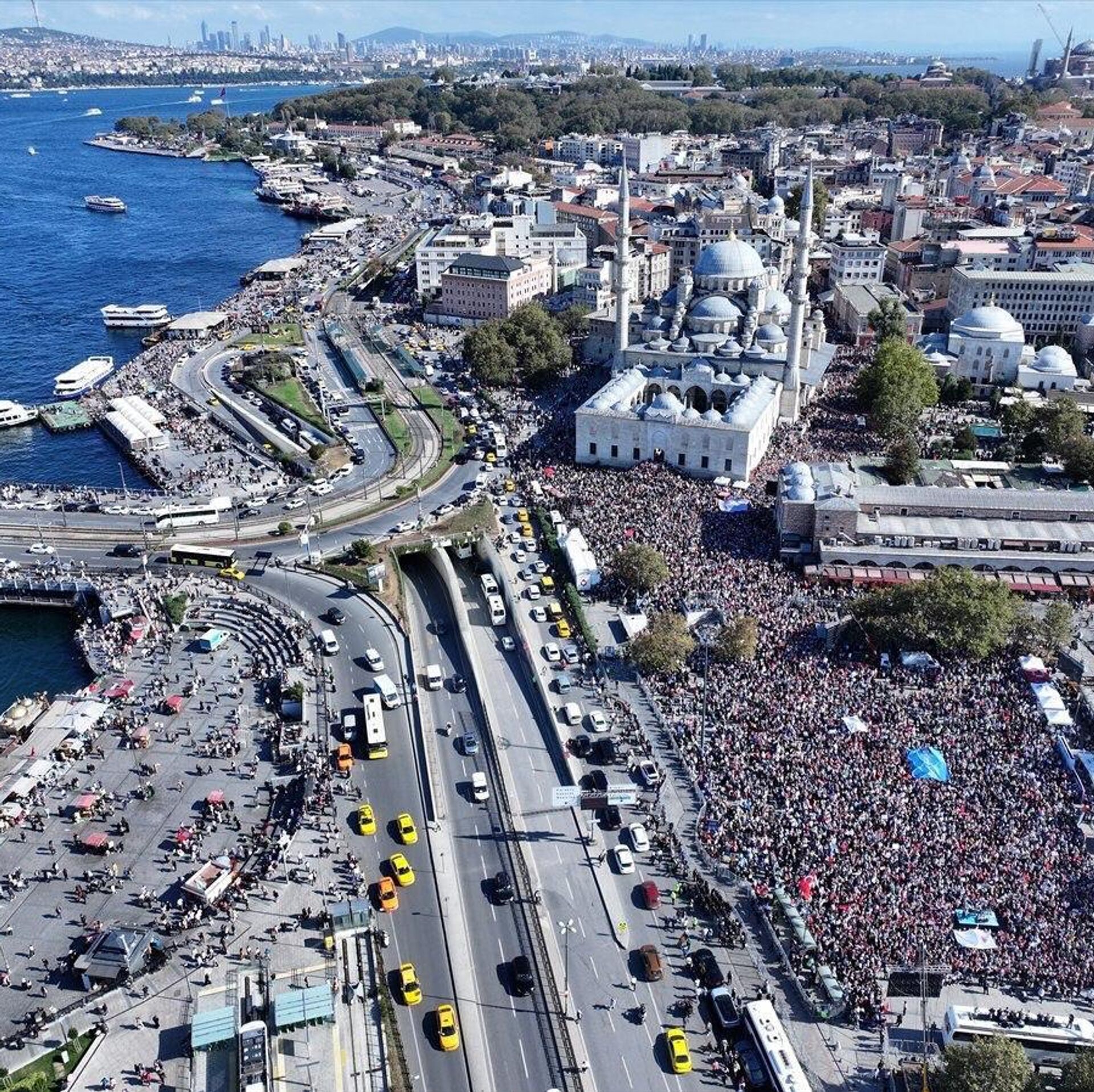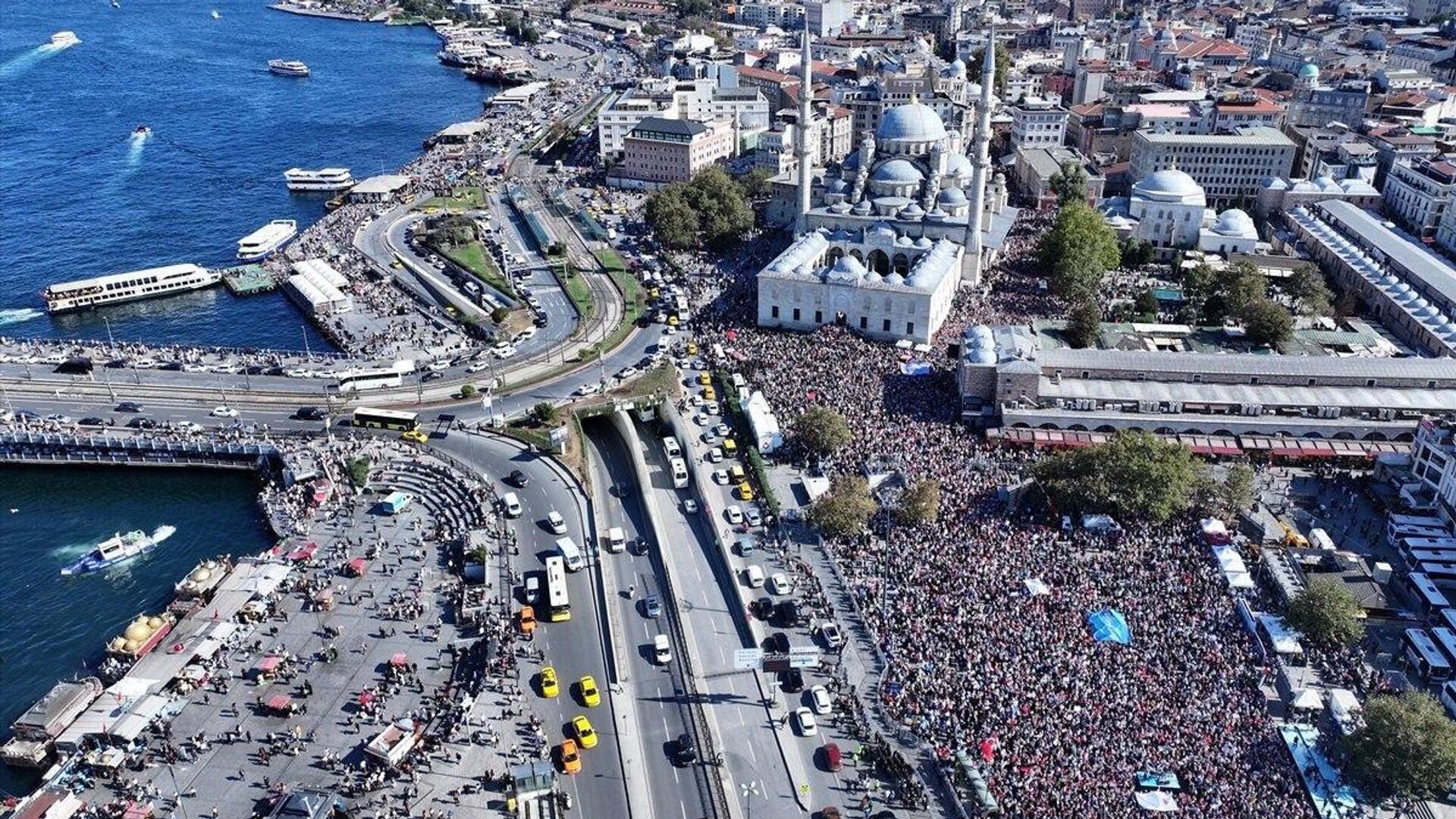 تظاهرکنندگان پس از نماز ظهر از مسجد ایاصوفیه به سمت میدان امینونو، جایی که تجمعی برگزار شد، راهپیمایی کردند. آنها پلاکاردهایی در حمایت از فلسطینیان و انتقاد از اقدامات ارتش اسرائیل حمل میکردند. راهپیماییهای مشابهی در چندین شهر دیگر ترکیه نیز برگزار شد.