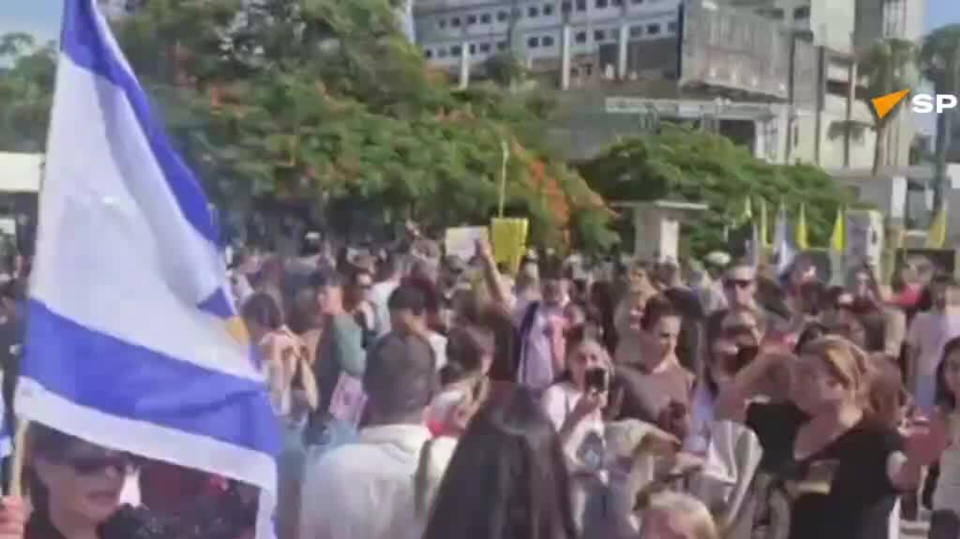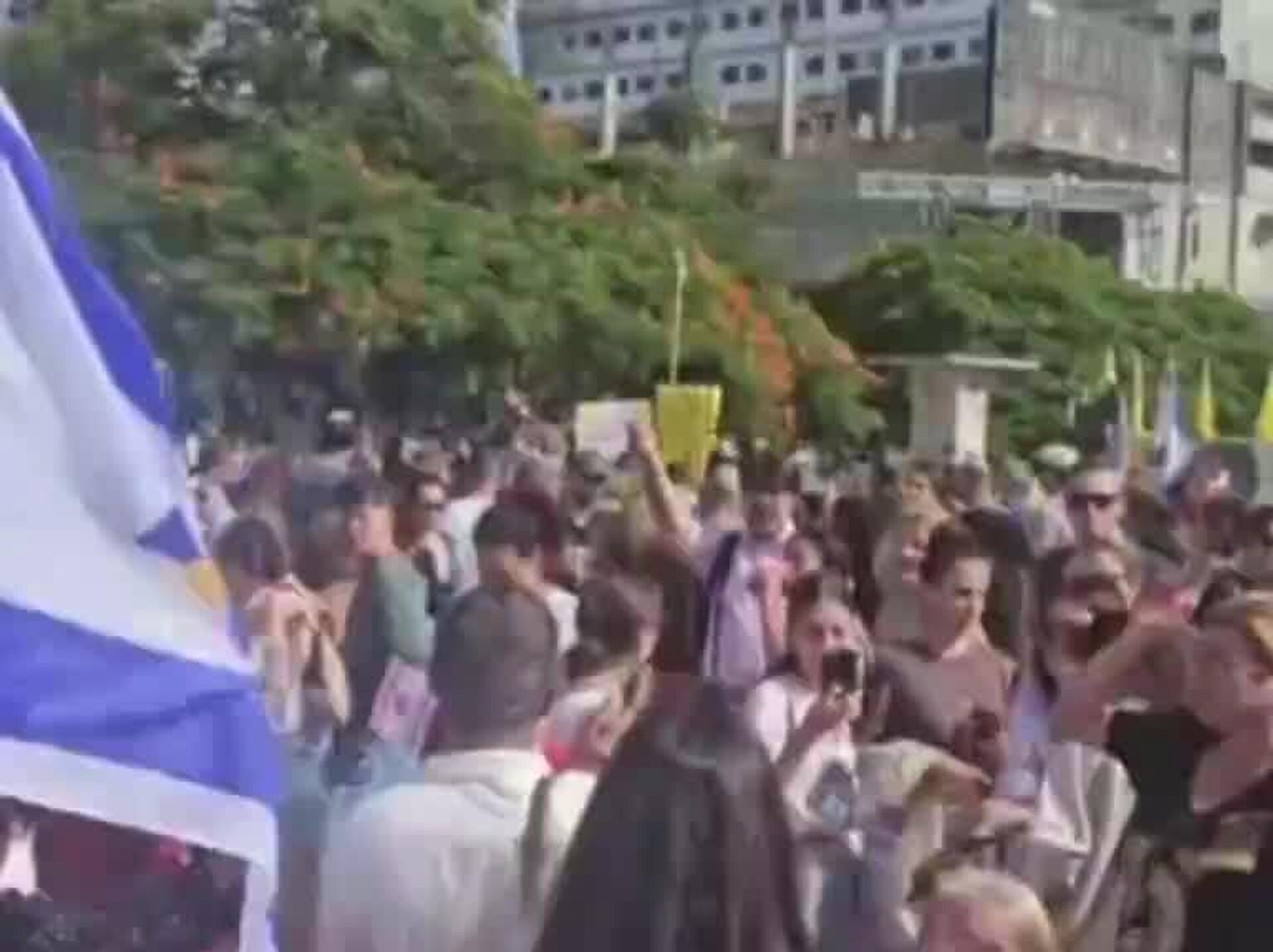خبرنگار اسپوتنیک: صدها اسرائیلی در میدانی در تلآویو تجمع کرده بودند و منتظر تصویب توافق دولت با حماس برای آزادی گروگانها از نوار غزه بودند